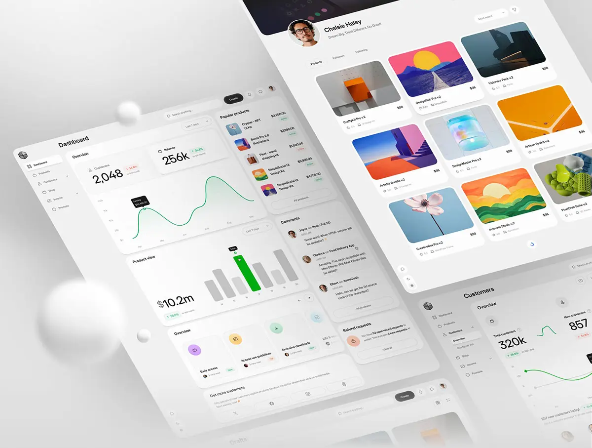 探索各种仪表板类型,包括概览、产品、推广、时间表、登录、注册、报表、收入、通知、消息中心、评论、帐户设置、退款、价格表、联盟中心和商店。