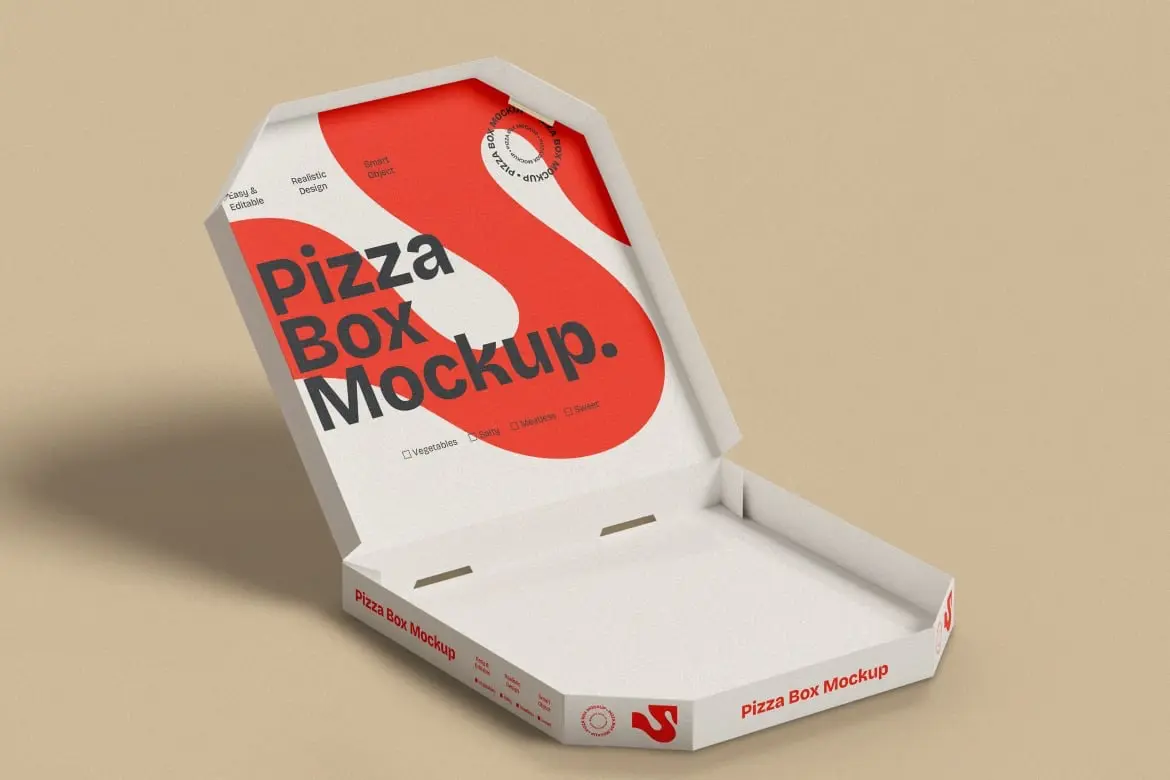 Pizza Box Mockup 3款披萨包装纸盒模型品牌logo标识设计贴图psd样机素材