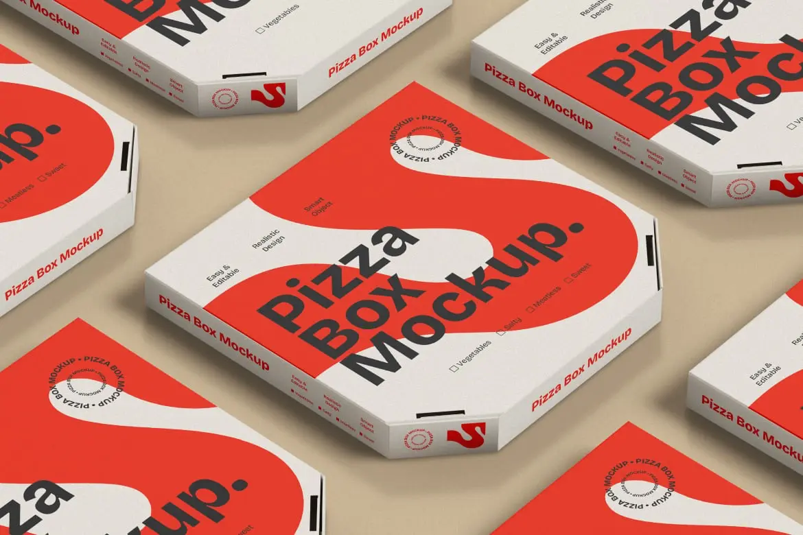 Pizza Box Mockup 3款披萨包装纸盒模型品牌logo标识设计贴图psd样机素材
