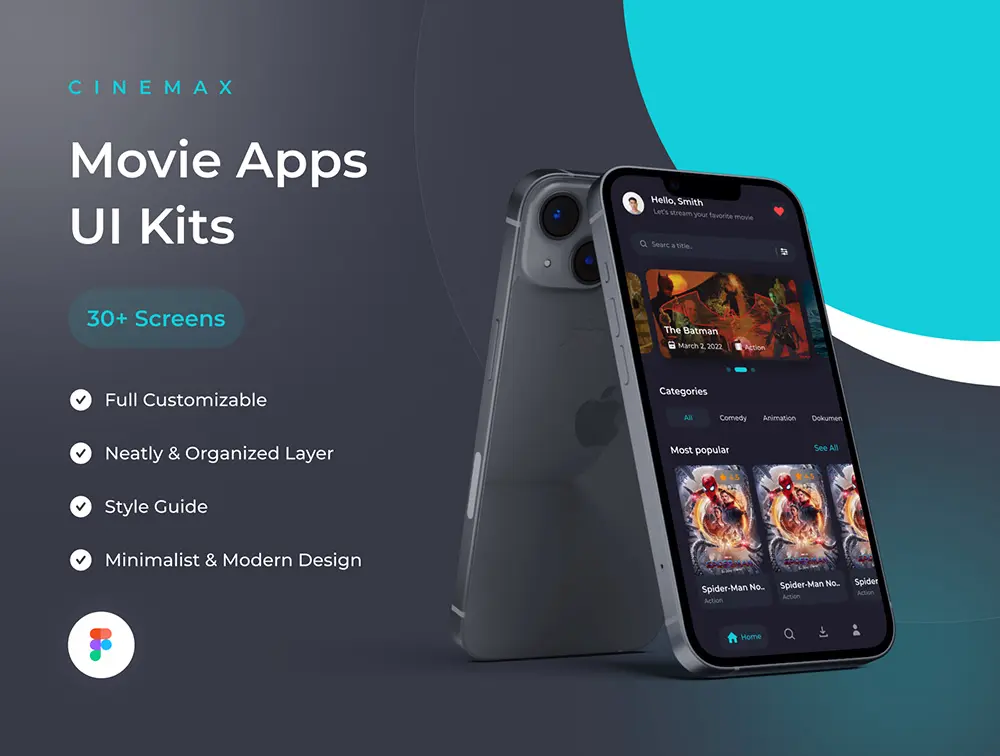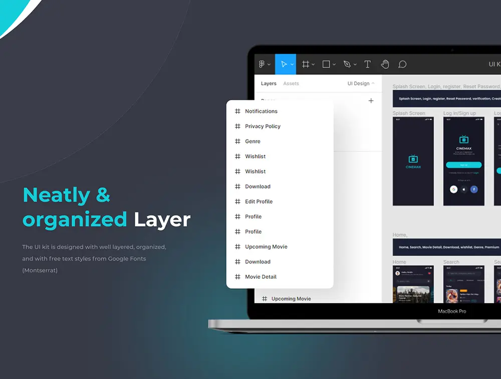 Cinemax 是一款优质且高质量的电影流媒体应用程序 UI 套件,包括 30 多个变体屏幕,这些屏幕的所有层都经过精心组织、精心命名和分组。