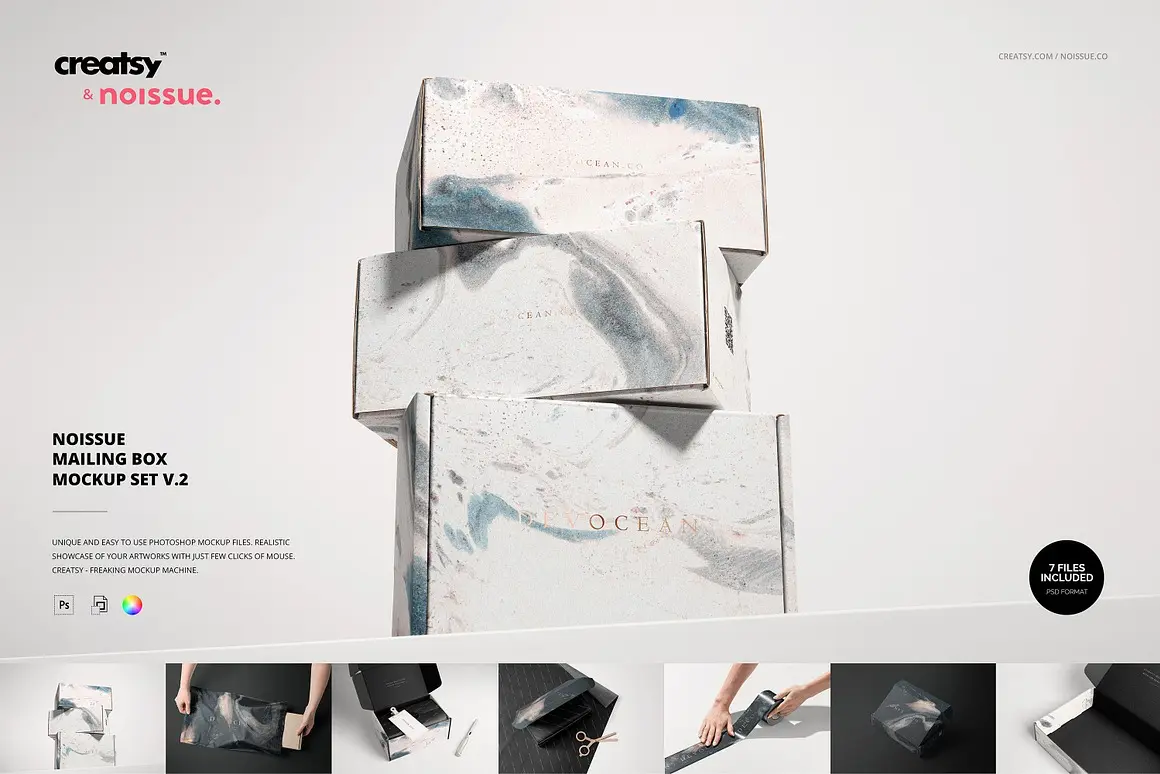 Noissue Mailing Box Mockup Set v.2 7款长方形快递打包纸箱飞机盒纸盒包装设计展示效果图ps样机素材