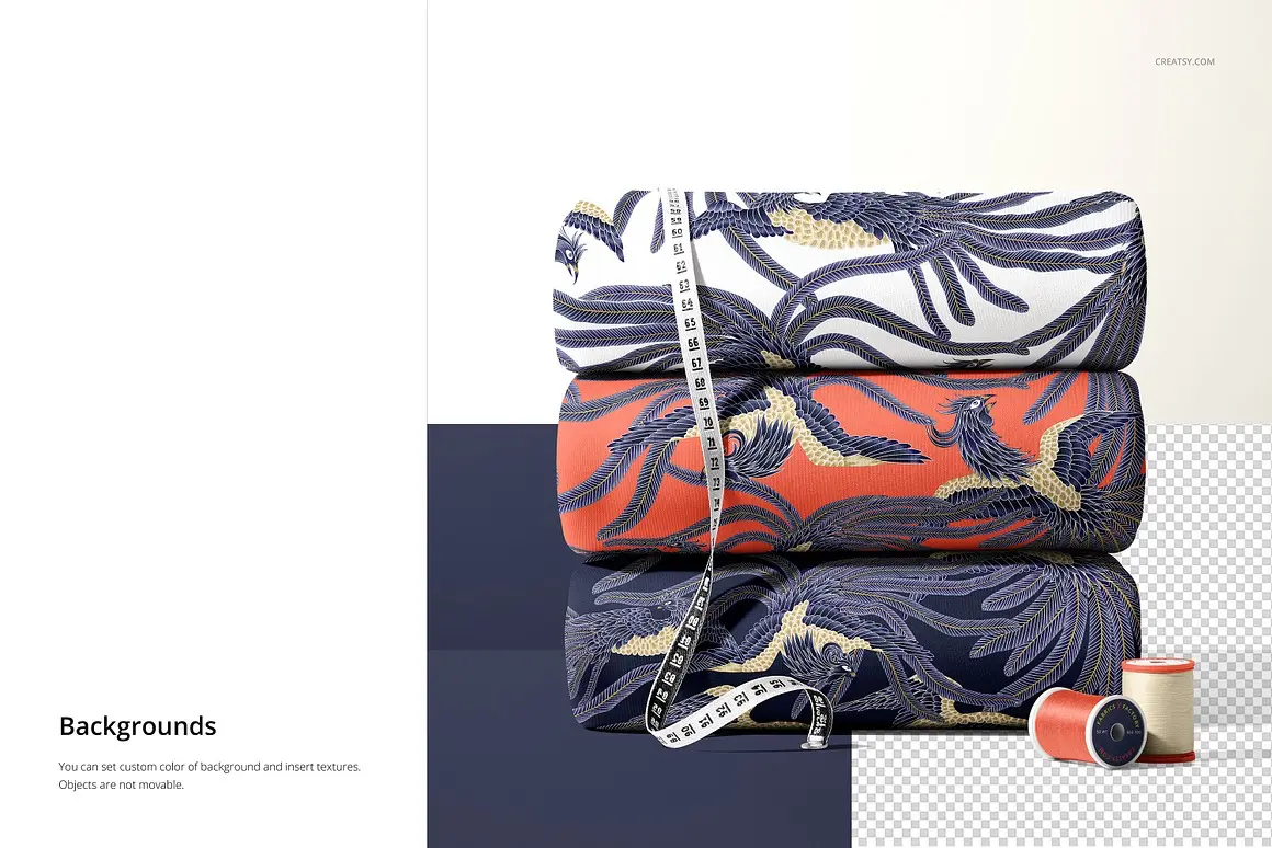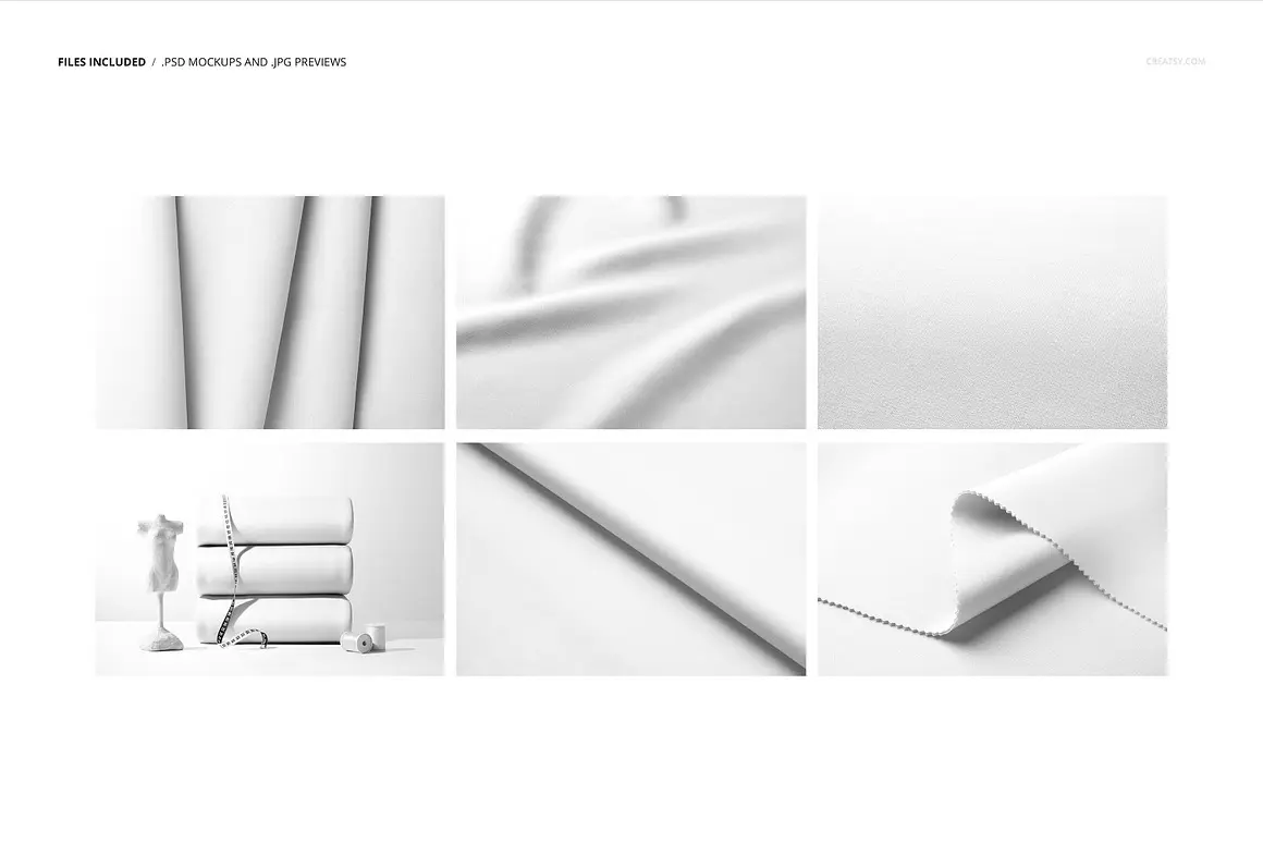 Scuba Fabric Mockup Set (22/FFv.11) 6款加厚混纺针织家纺面料布料印花图案设计展示效果图ps样机素材