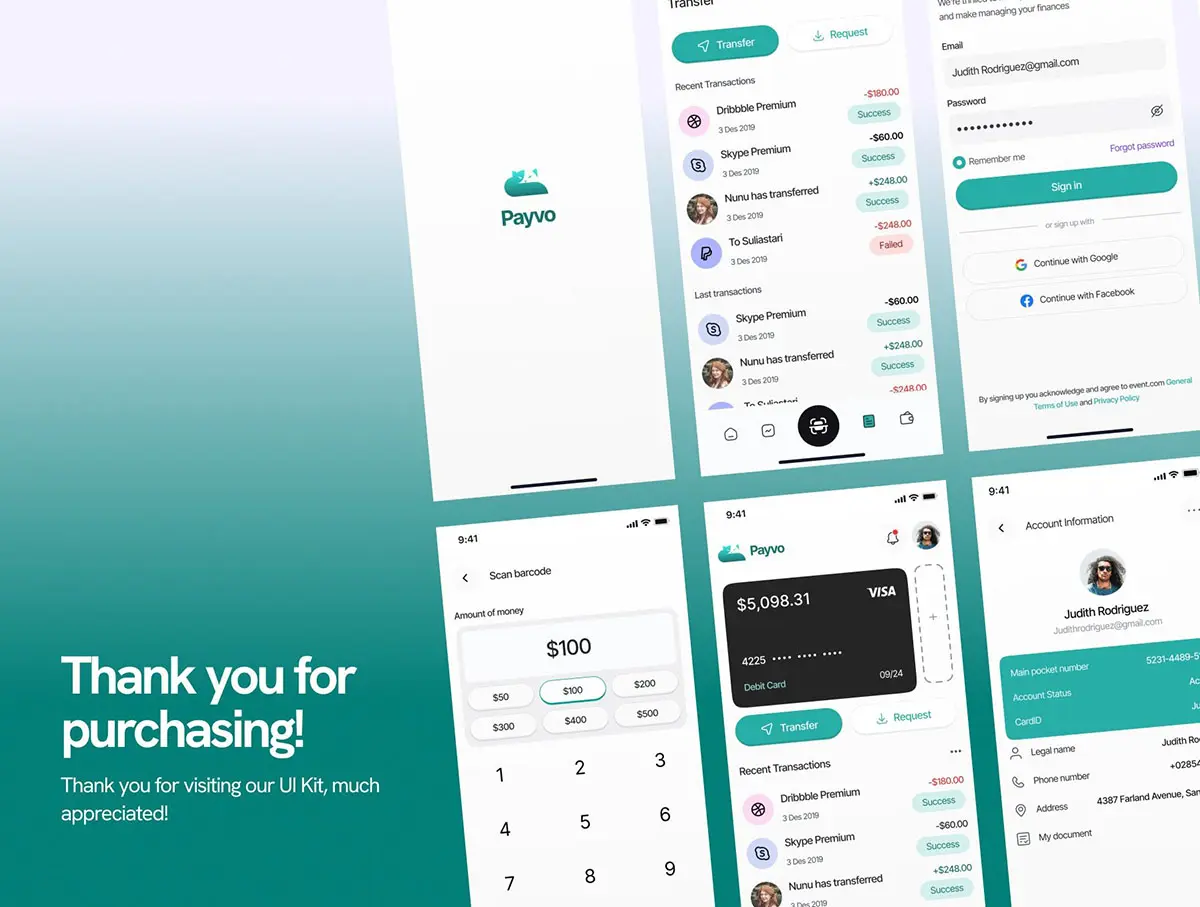 Payvo 是构建功能强大、用户友好且视觉震撼的移动银行应用程序的终极工具包。