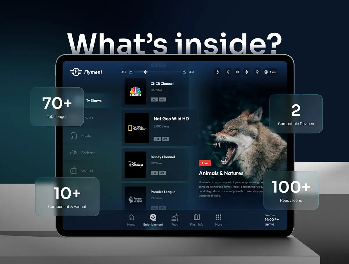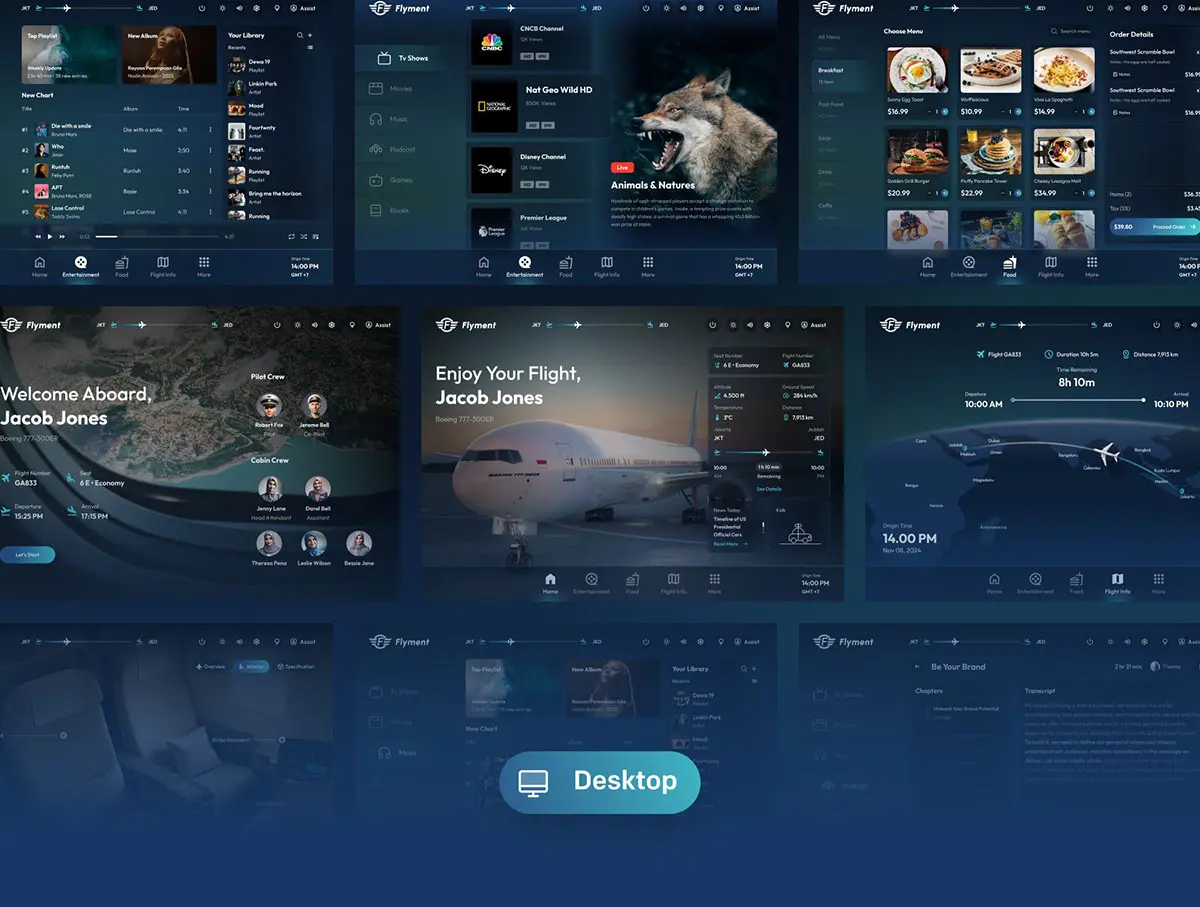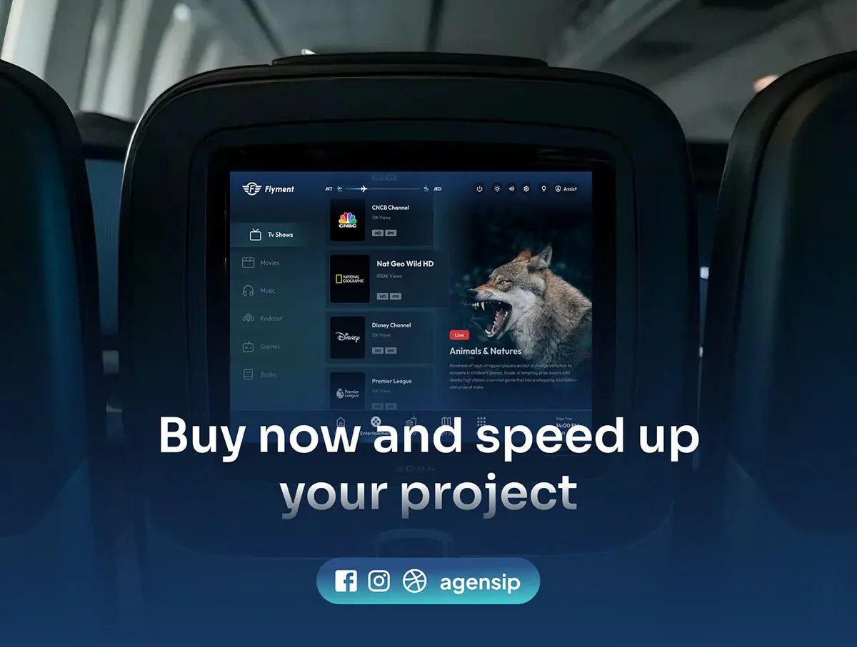 Flyment – SAAS Entertainment Management UI Kit 70+屏航班机舱座椅显示屏SaaS服务娱乐管理仪表盘UI界面