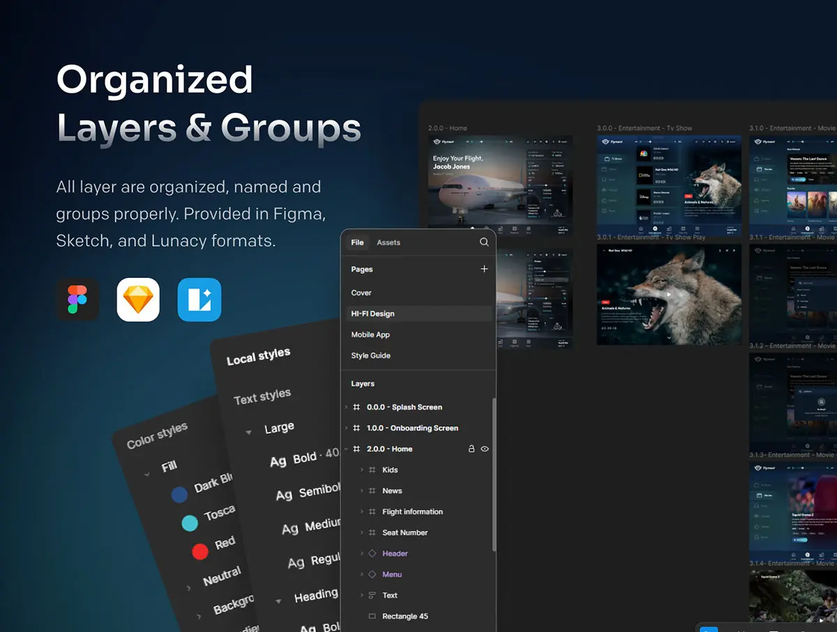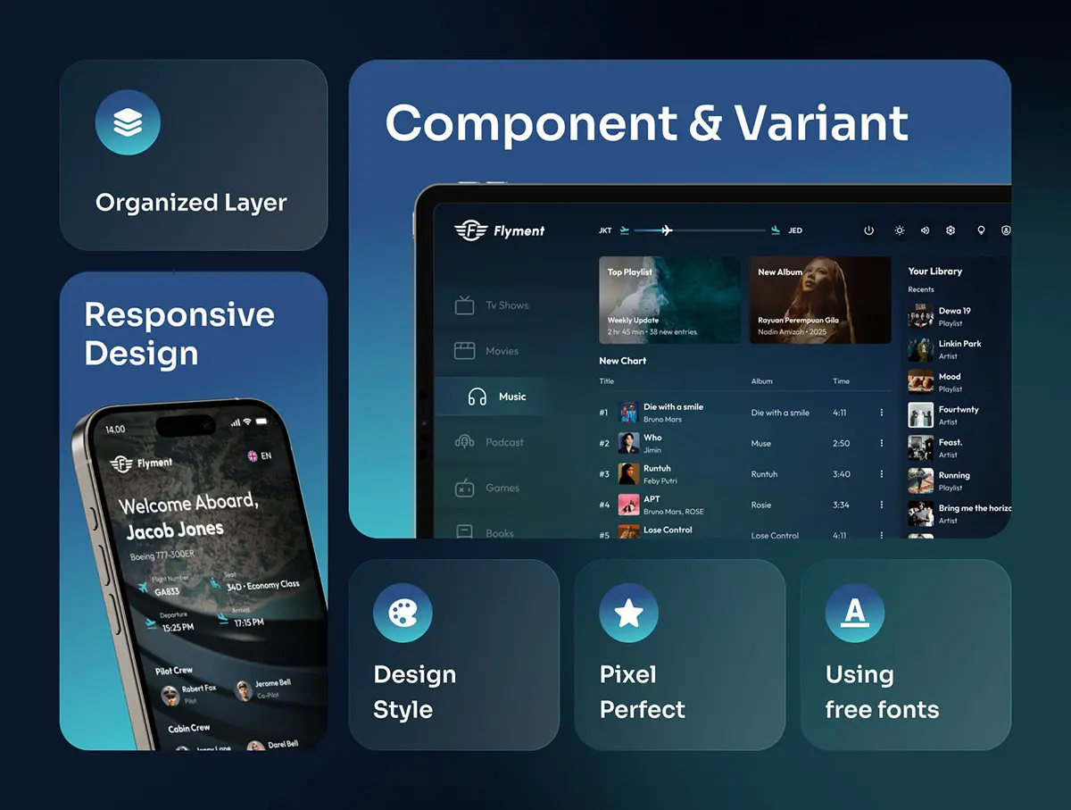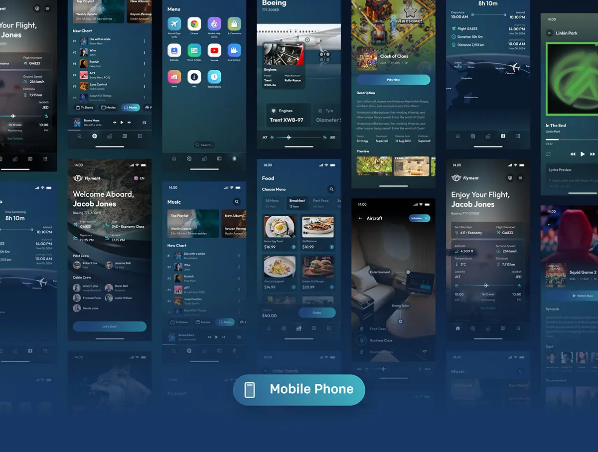 Flyment – SAAS Entertainment Management UI Kit 70+屏航班机舱座椅显示屏SaaS服务娱乐管理仪表盘UI界面