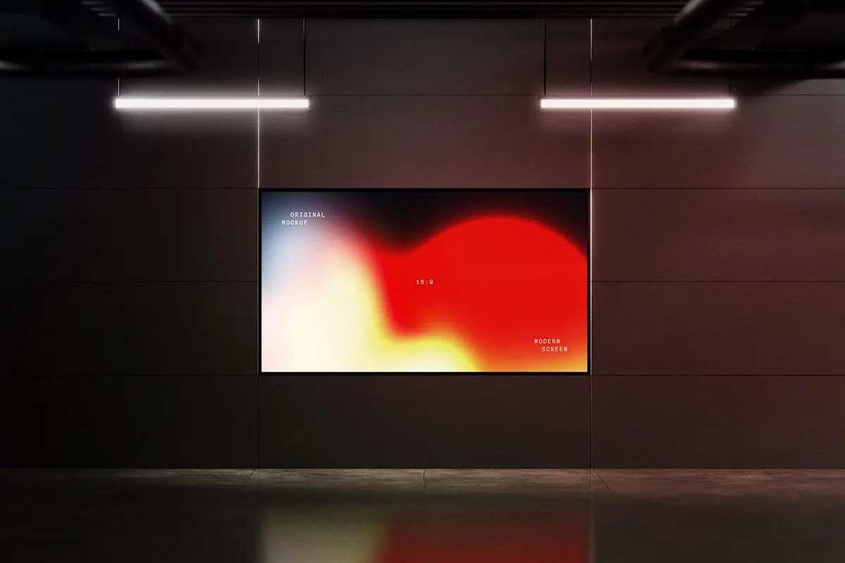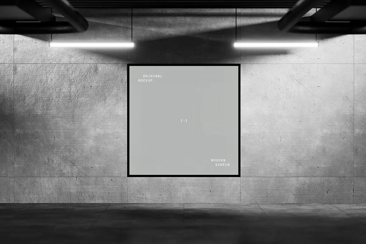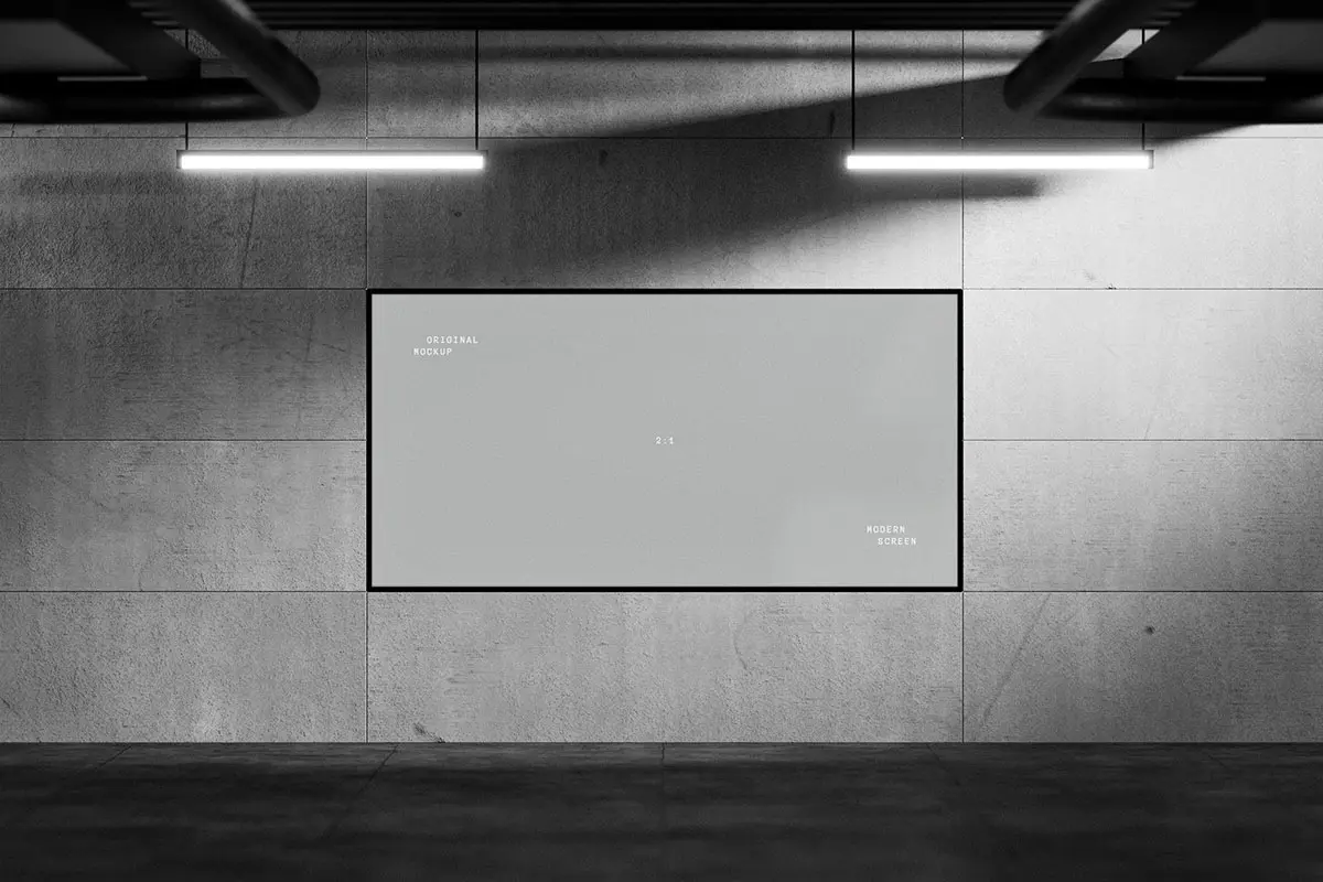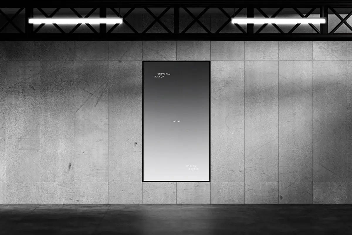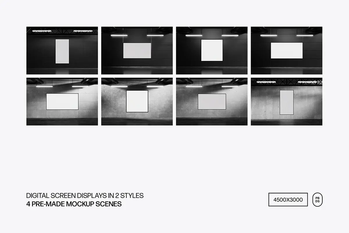 极简工业风LED电子屏幕灯箱广告牌海报设计作品展示效果图ps样机 Digital Screen Display Mockups
