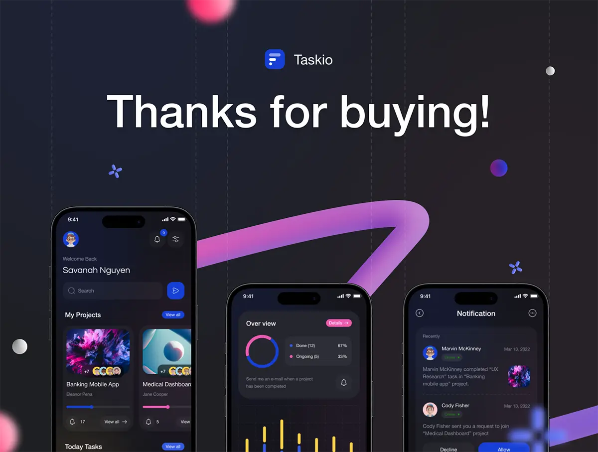 双配色项目管理团队任务协作沟通平台app应用工具ui界面设计模板 Taskio – Project Managemnet Mobile UI Kit
