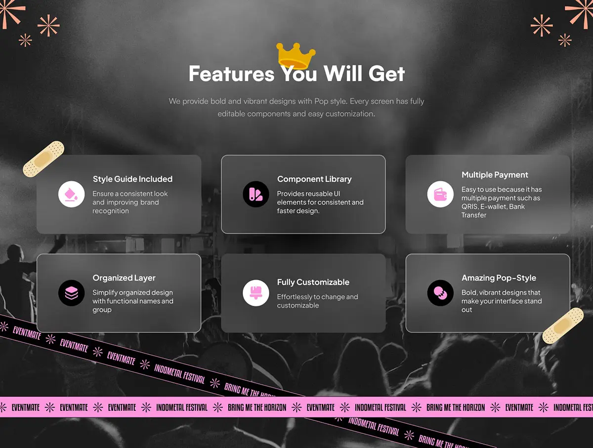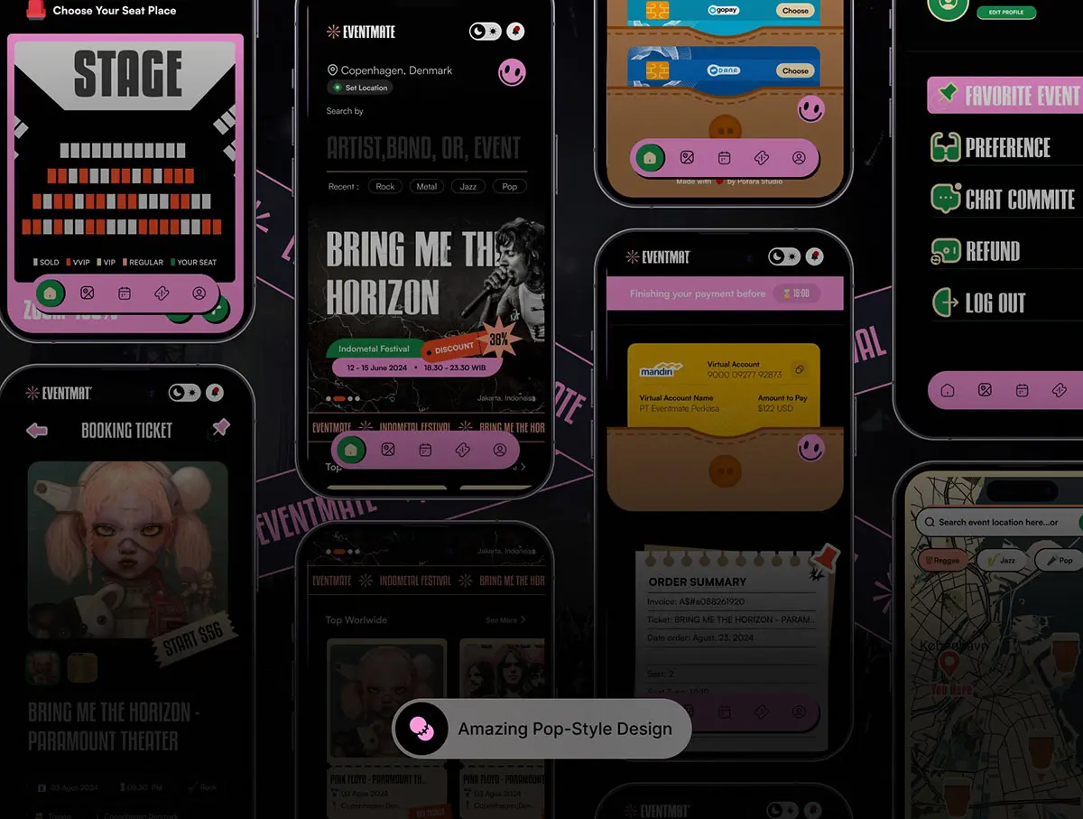 Eventmate 是一款充满活力和创新性的活动票务应用程序,旨在提升活动组织者和参与者的体验。它采用充满活力的波普艺术风格,为活动管理带来清新而现代的美感。