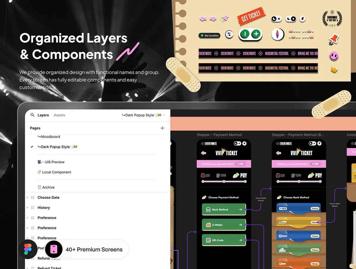 40屏高品质活动票务线上预订应用app设计用户界面ui套件模板 Eventmate – Event Ticketing App