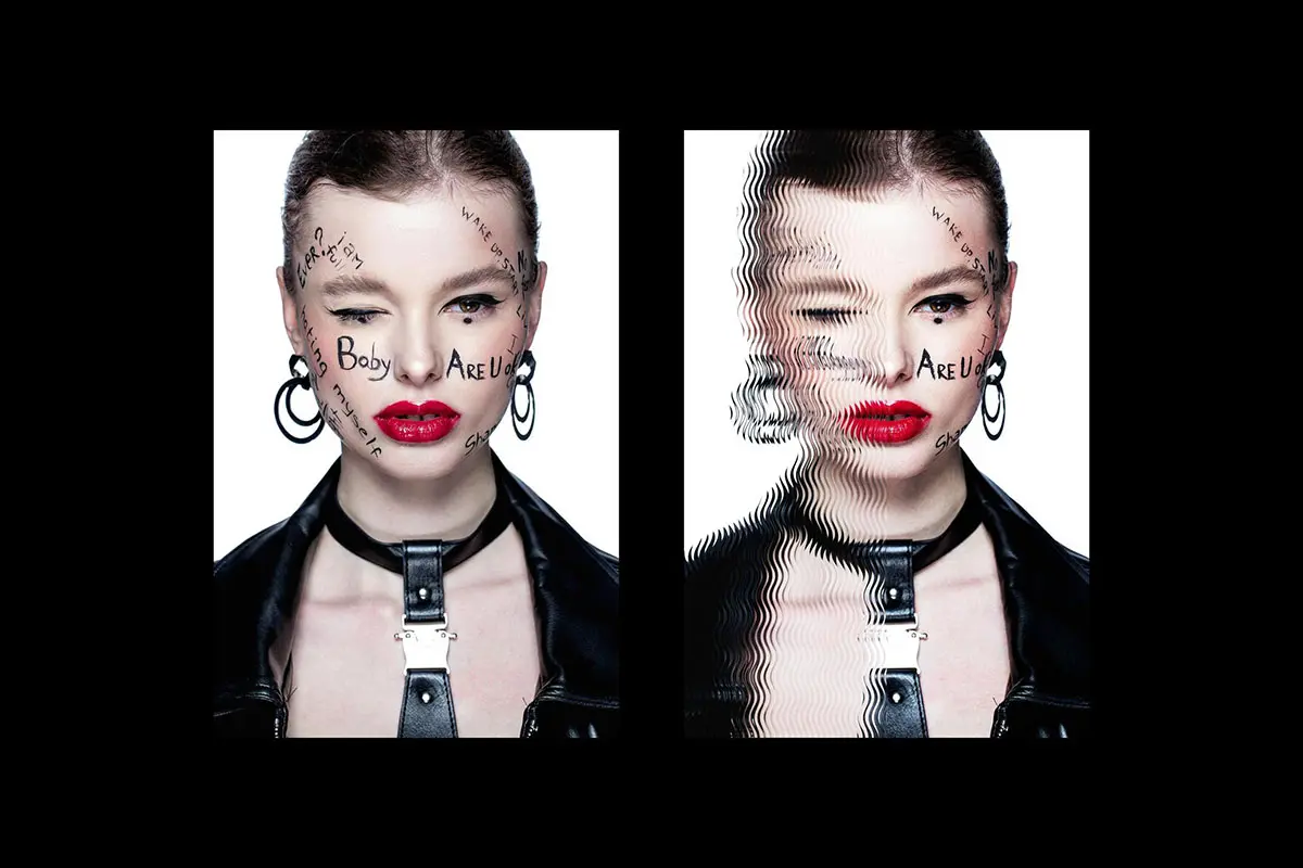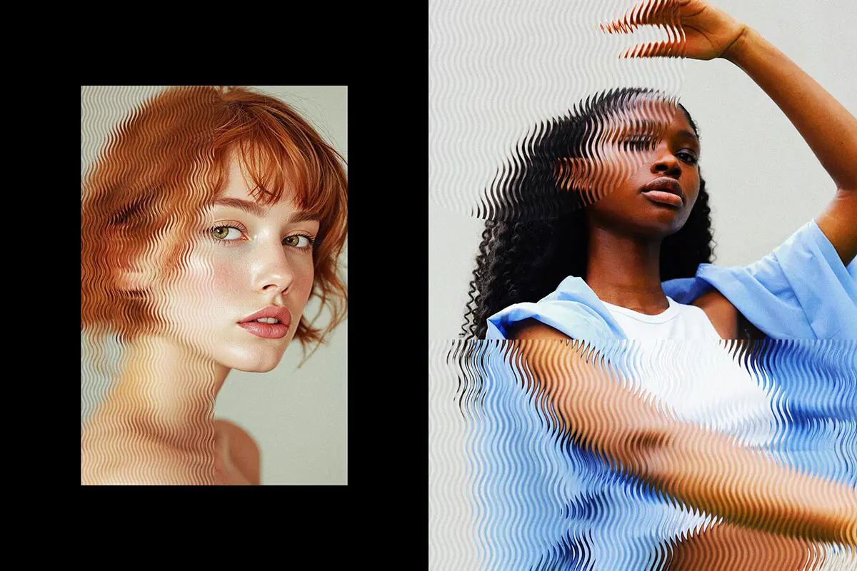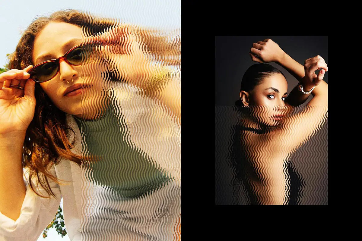 模糊透明波浪玻璃照片效果ps特效滤镜样机 Wavy Glass Photo Effect