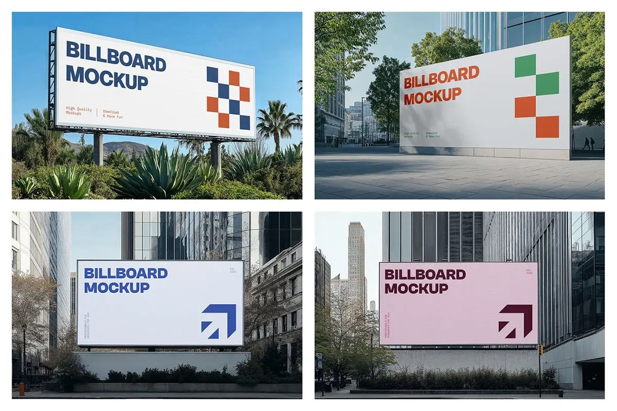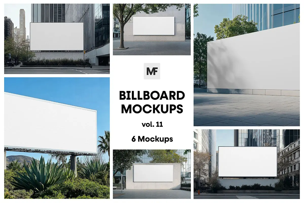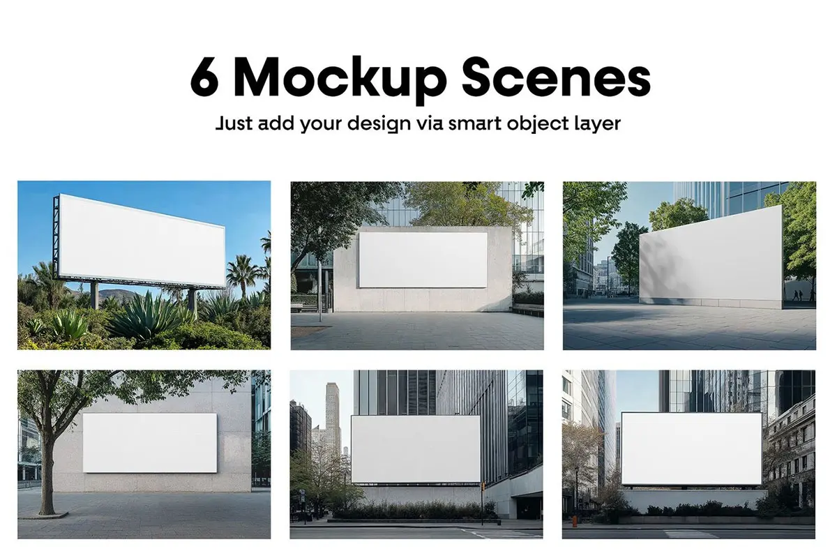 户外墙面横幅广告牌海报框架模型展示设计贴图psd样机素材 Commercial Billboard Mockups vol.11