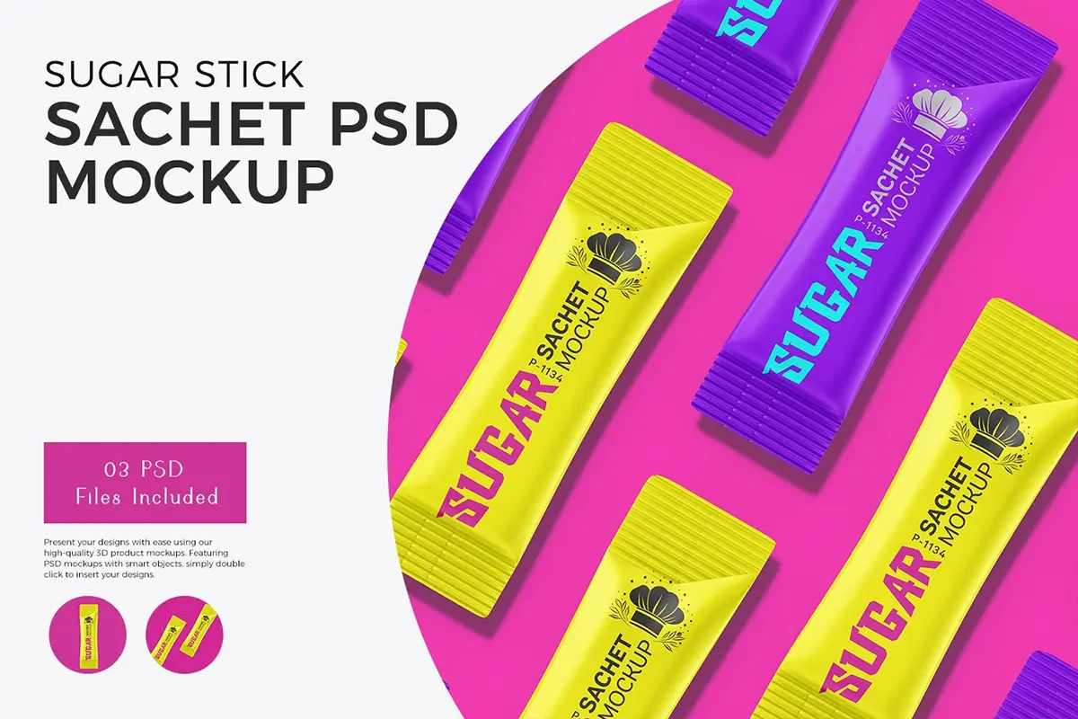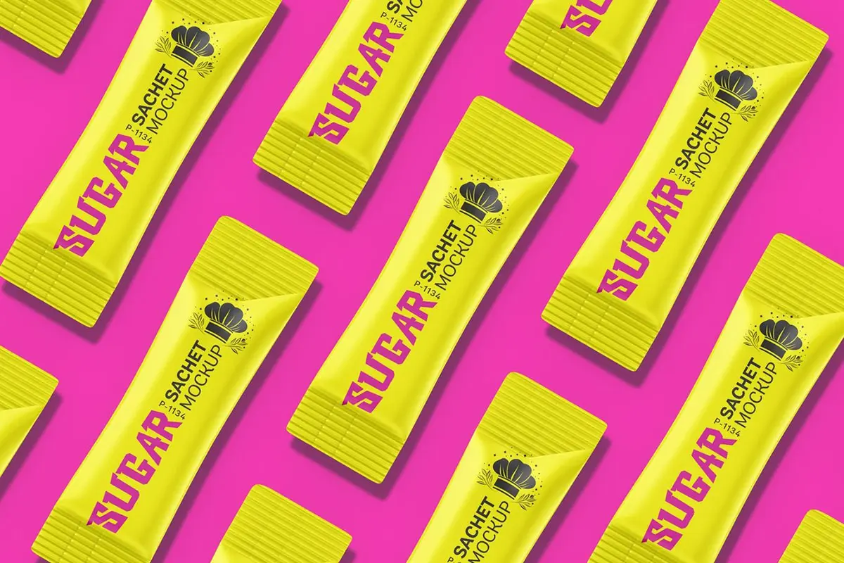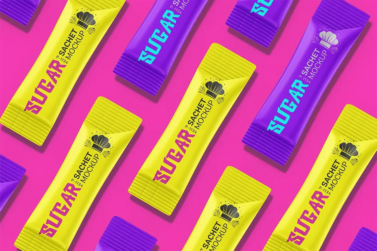塑料粉末调味料小袋模型品牌包装设计贴图Ps样机素材模板 Plastic Stick Sachet Mockup