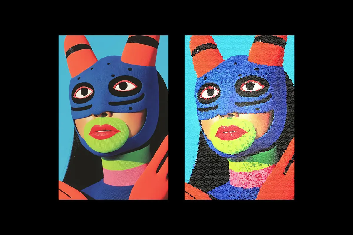 卡通漫画像素马赛克照片效果ps特效滤镜样机 Color Mosaic Photo Effect