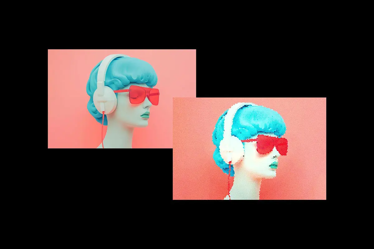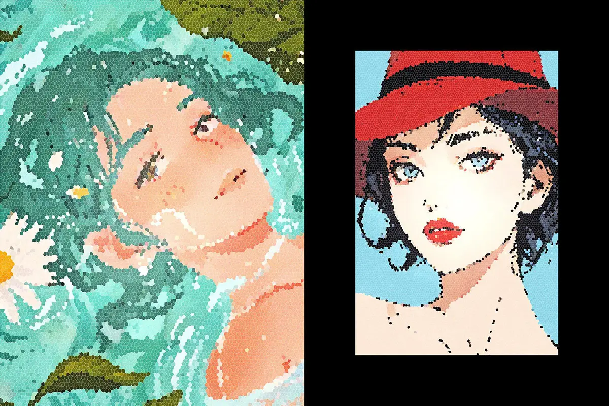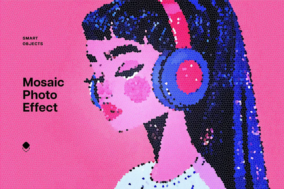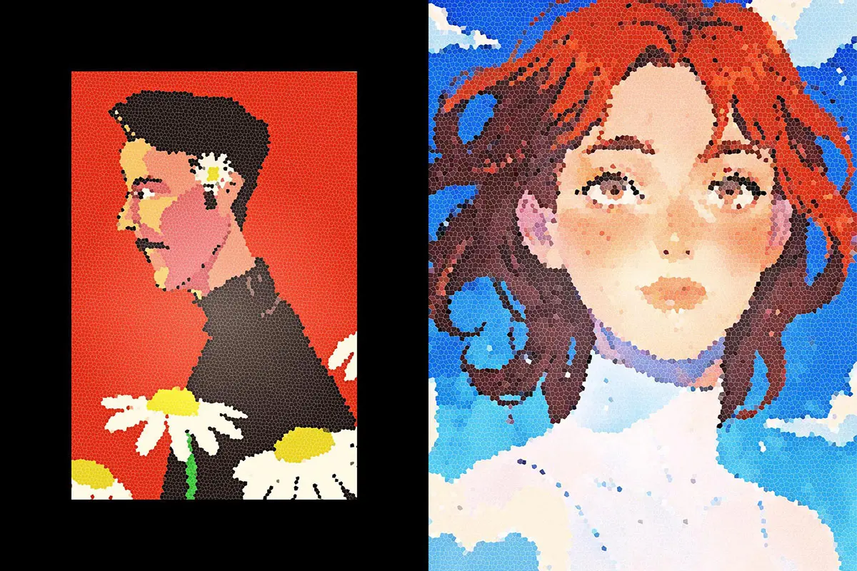 卡通漫画像素马赛克照片效果ps特效滤镜样机 Color Mosaic Photo Effect