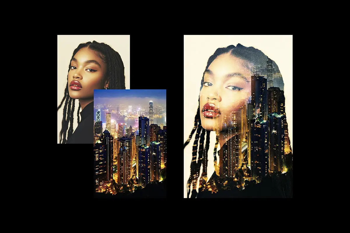 双重叠影曝光照片图像效果滤镜ps特效样机素材 Double Exposure Template Effect