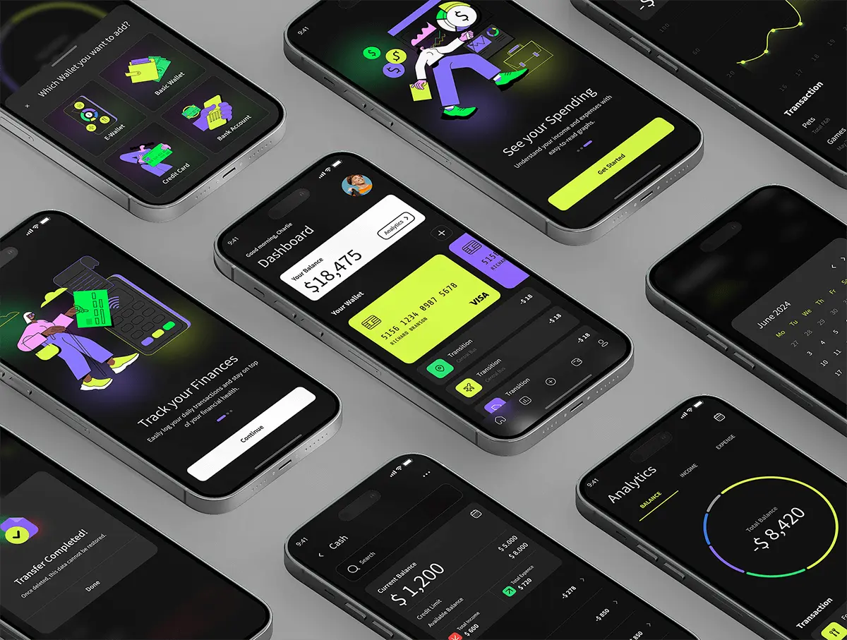 42+屏暗黑系银行金融理财电子钱包app ui界面设计figma模板素材 Online Banking Ui kit