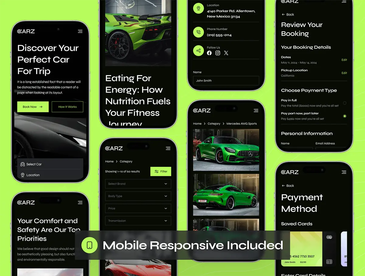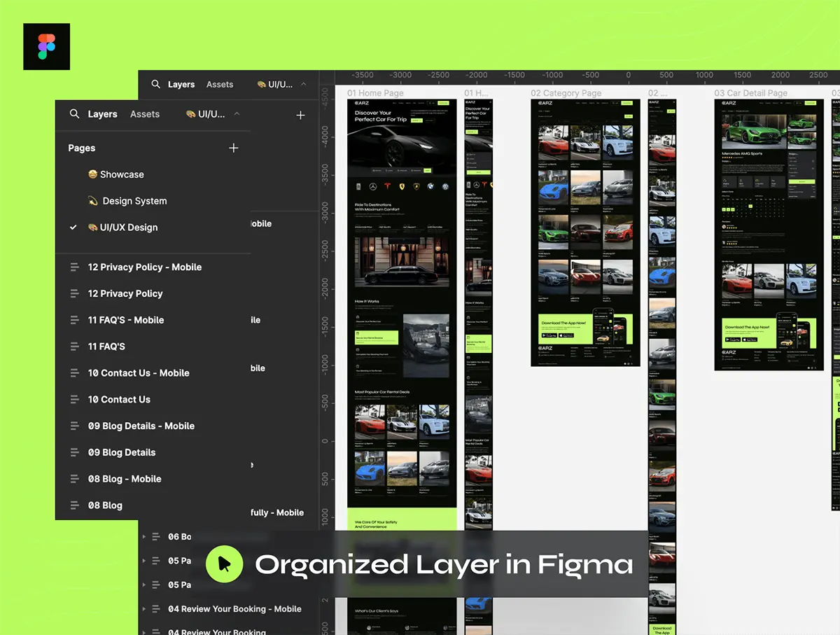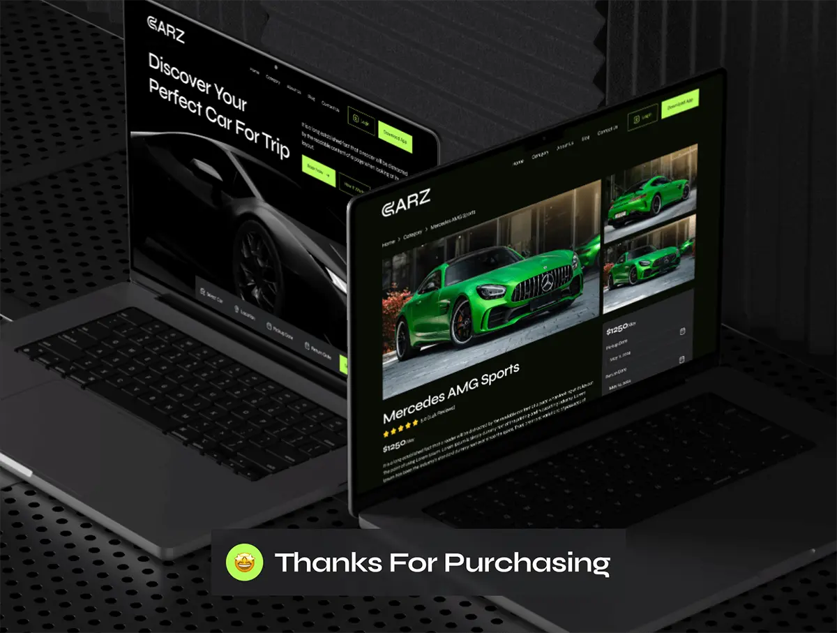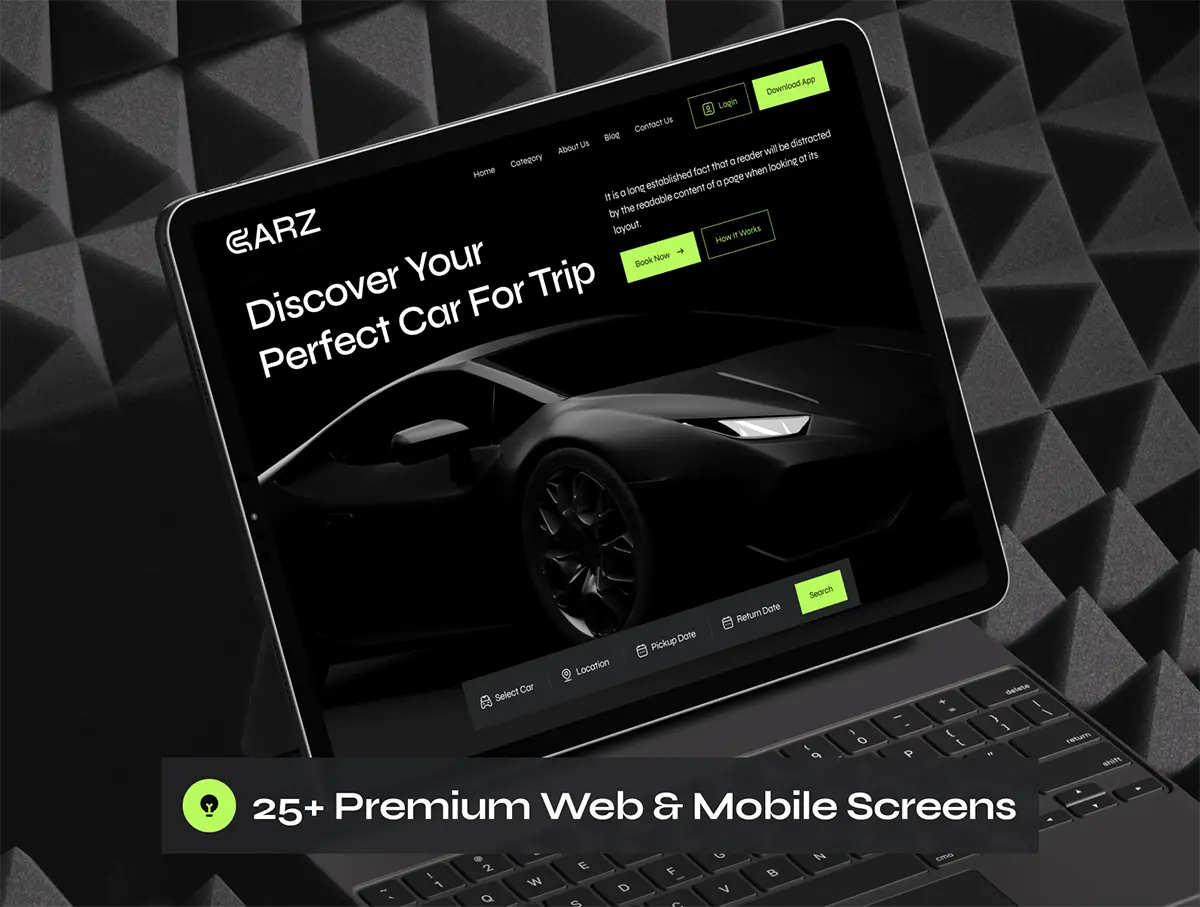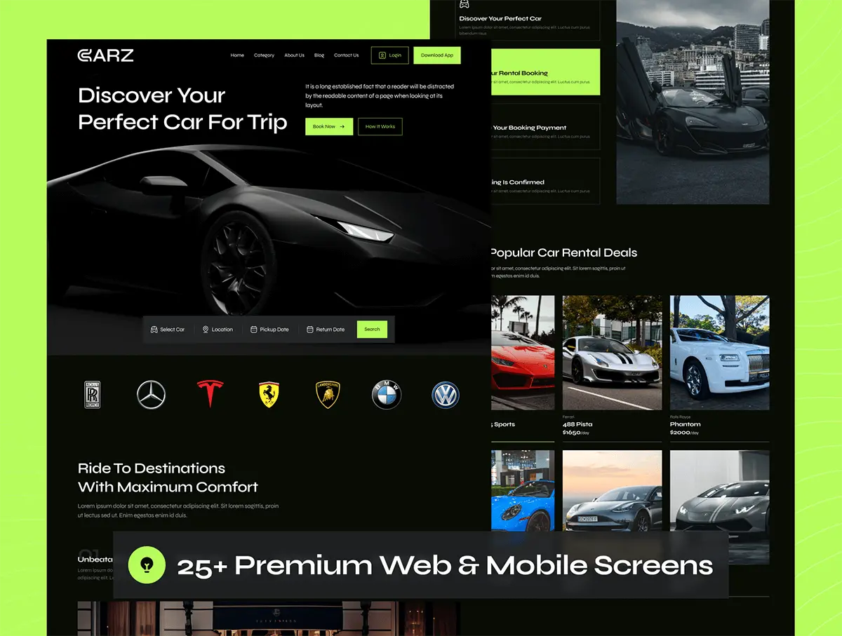 汽车豪车跑车租赁平台网站响应式网页界面设计ui套件模板 CARZ – Car Rental Website UI Kit