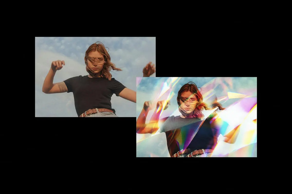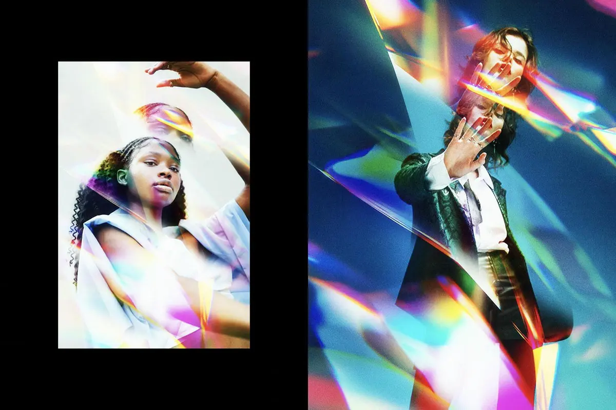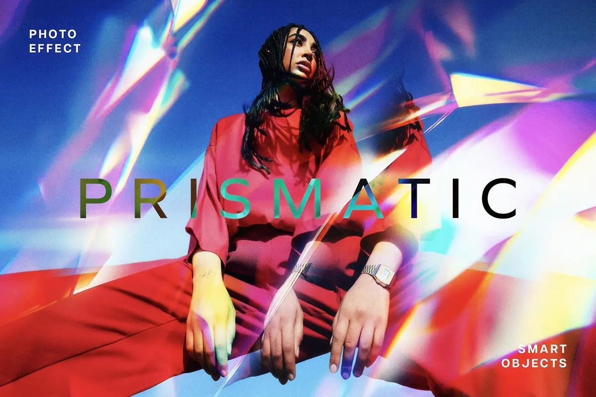 棱镜破碎玻璃折射虹光照片图像ps特效样机素材预制模板 Prismatic Effect