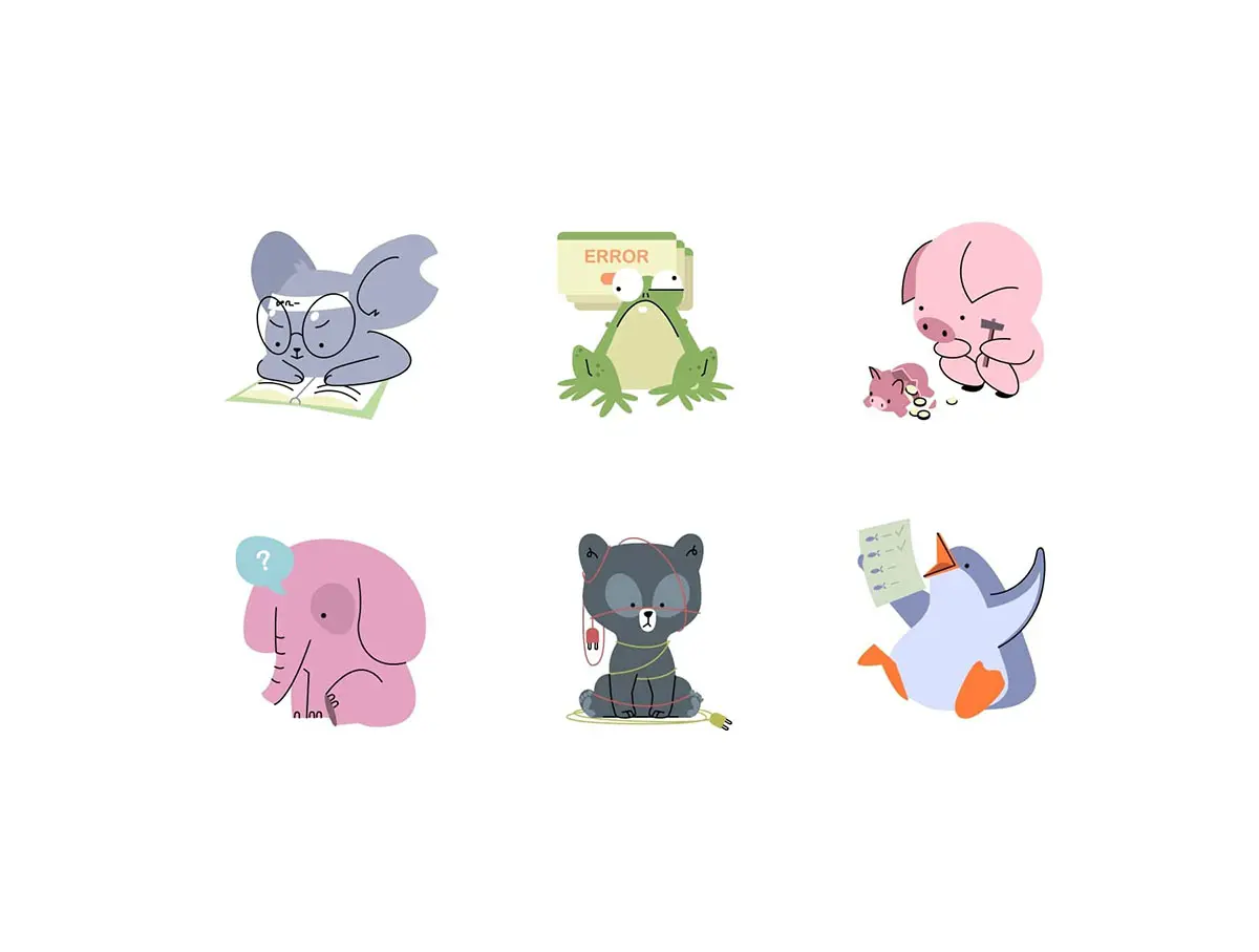 24幅适用于应用程序和网络的友好动物插图 Friendly animals illustrations for Apps and Web