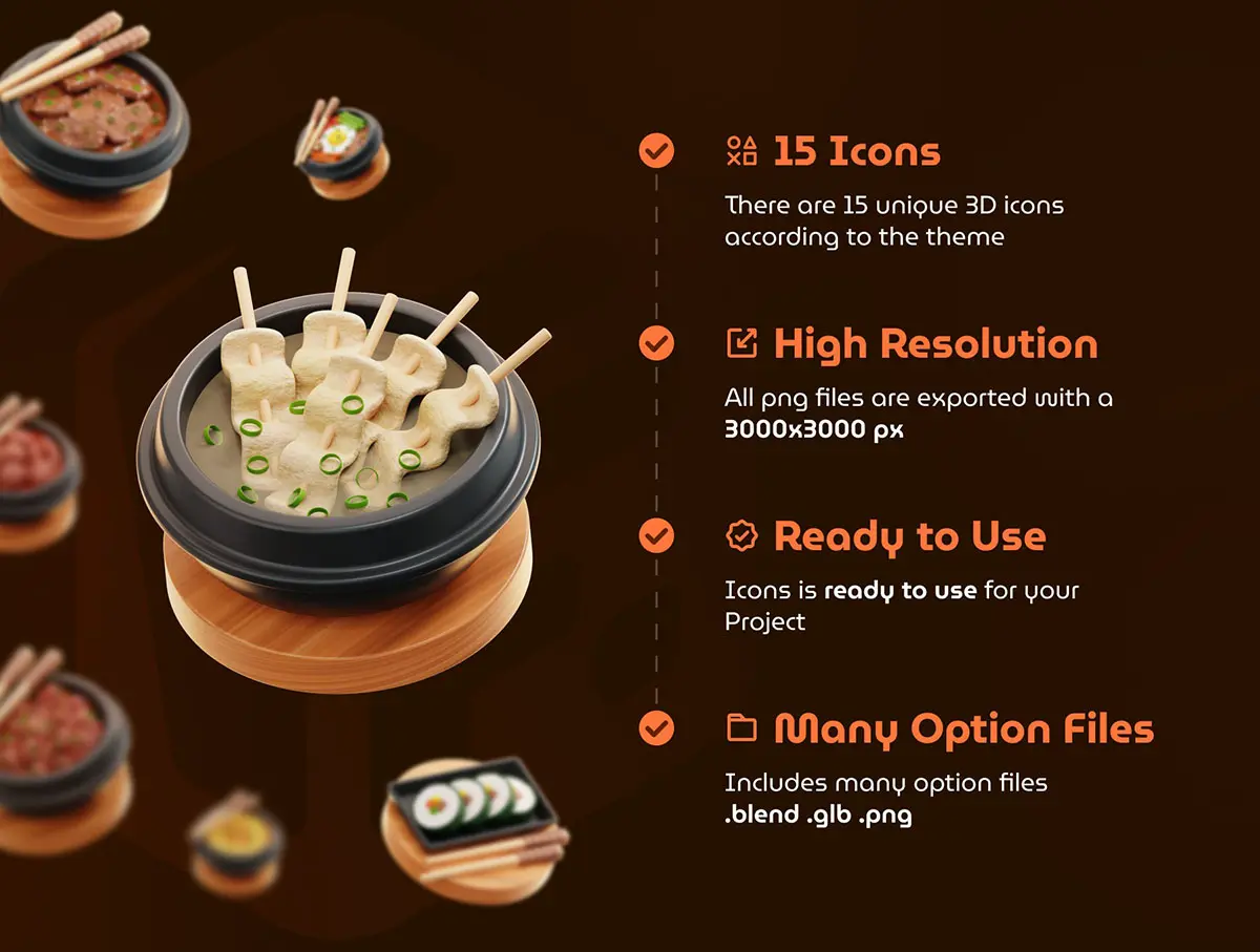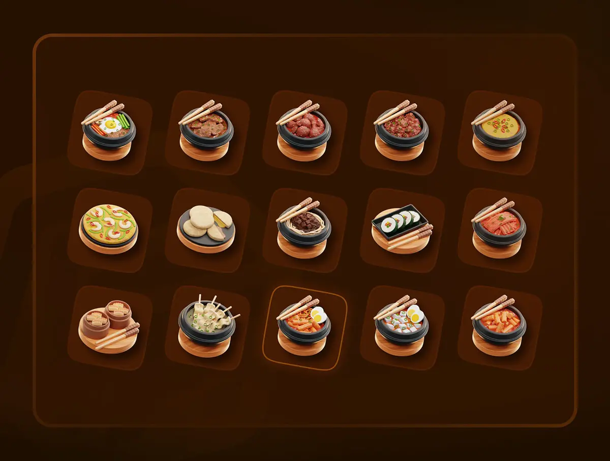 15款韩国美食3D图标应用程序界面插图icon素材 Korean Food 3D Icon Set