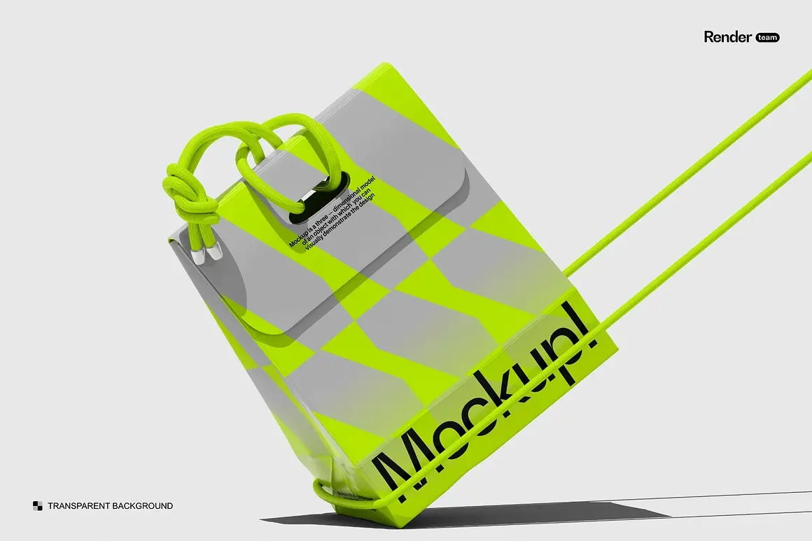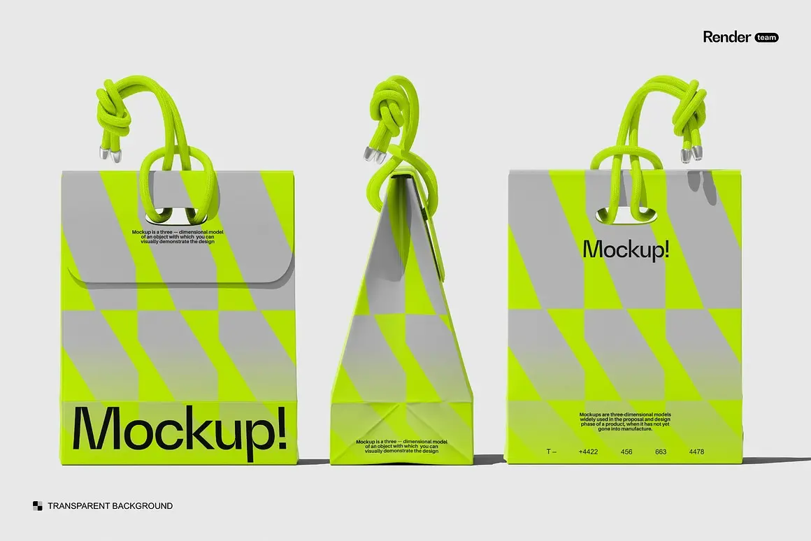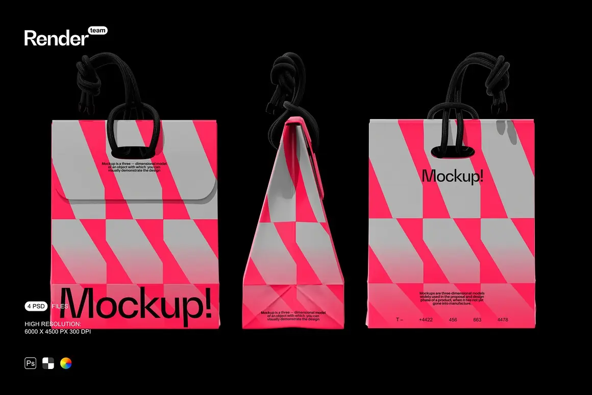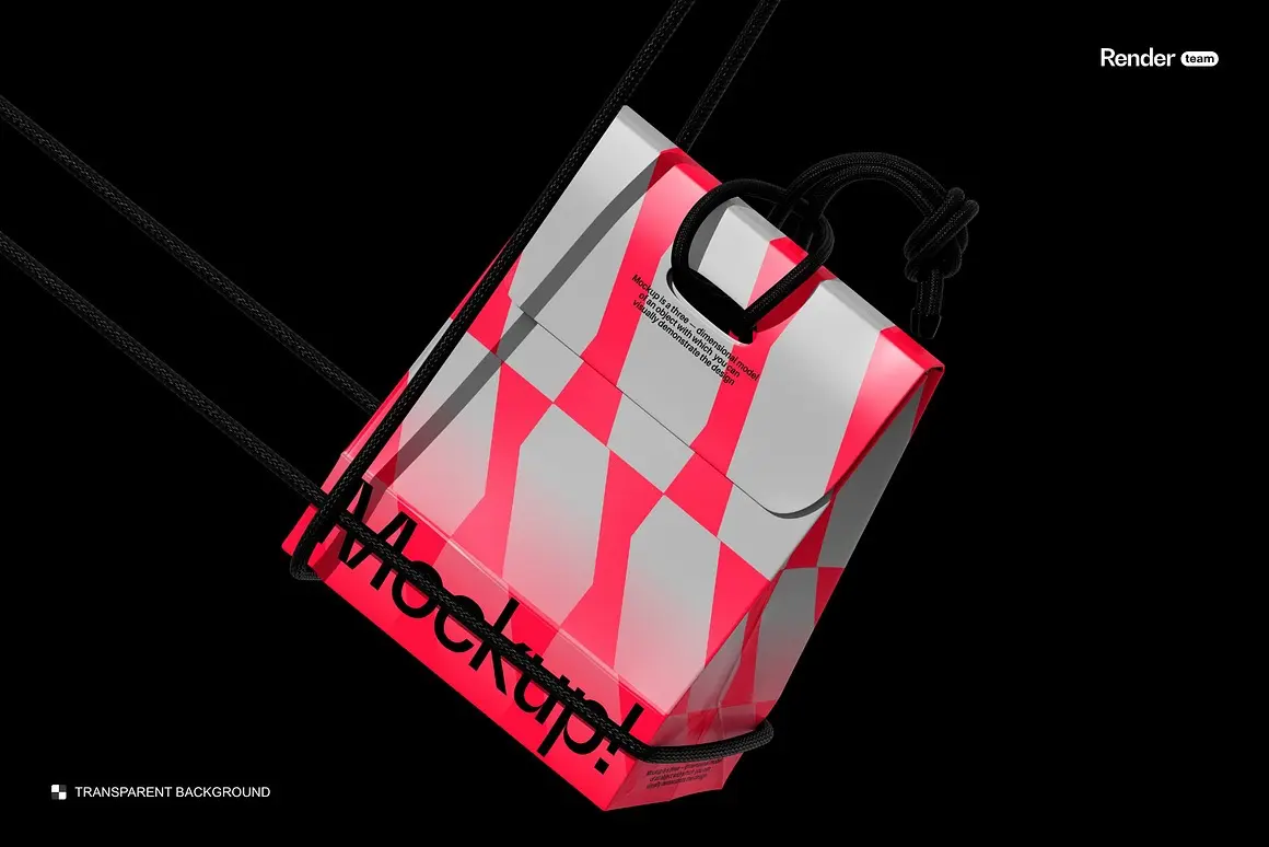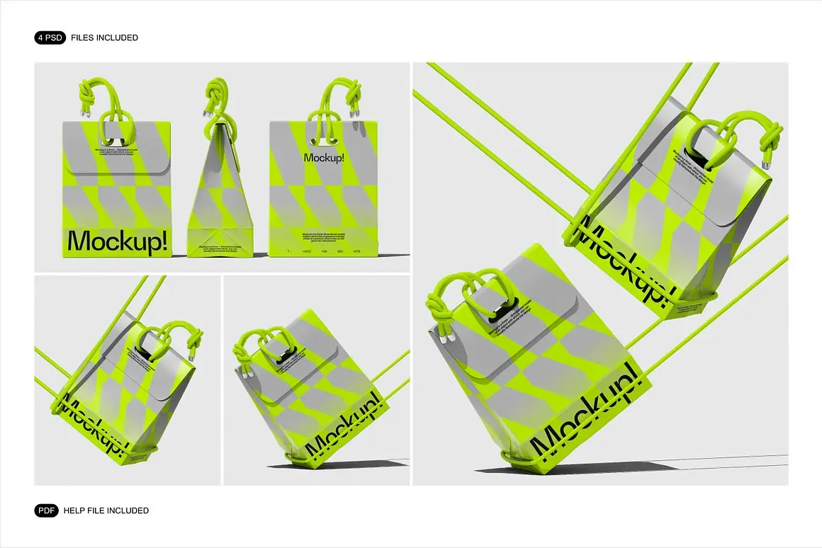 4款潮流文创时尚纸袋购物袋手提袋礼物包装设计ps样机展示效果图 Paper Bag Mockup Set