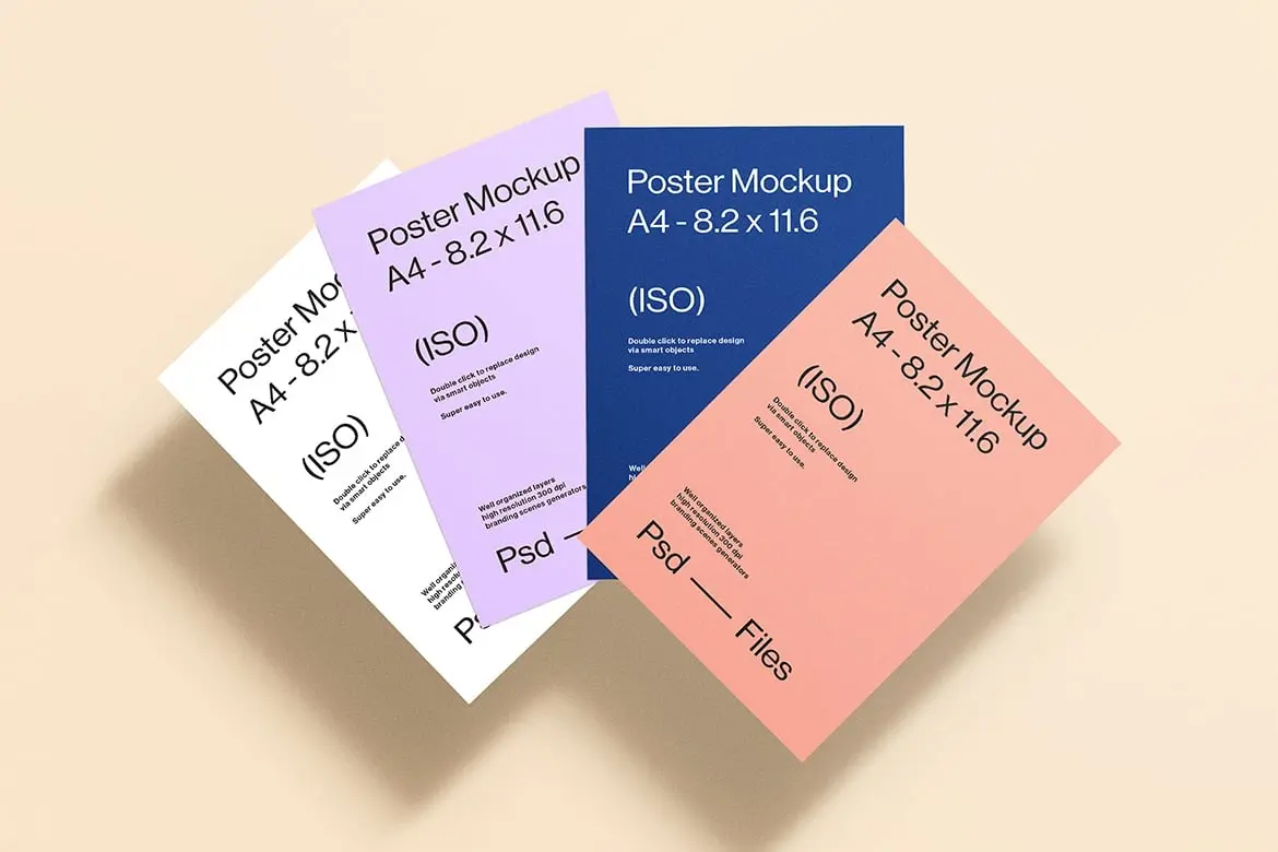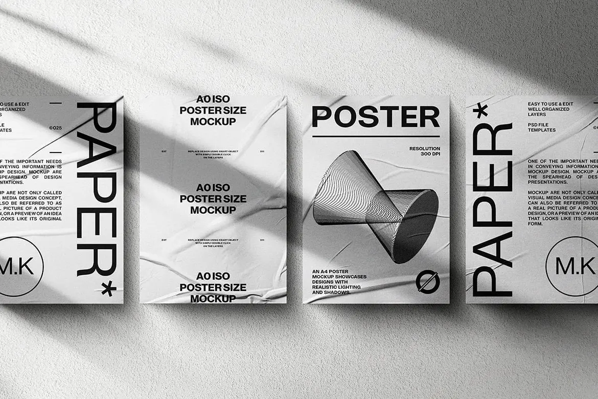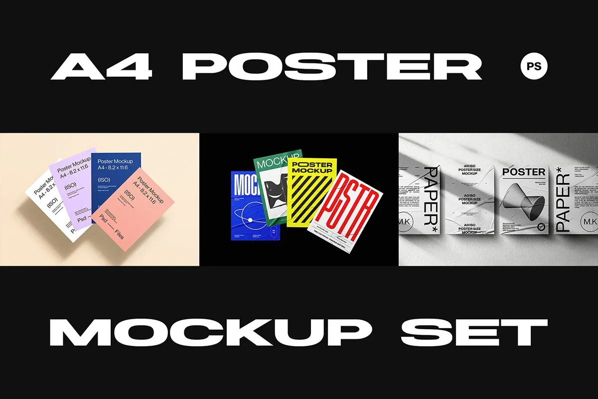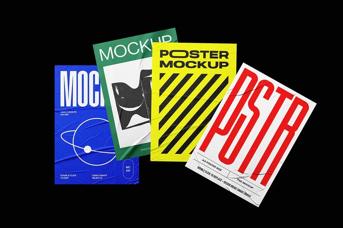 A4褶皱胶合宣传单页海报模型展示设计贴图ps样机素材模板 A4 Poster Mockup Set