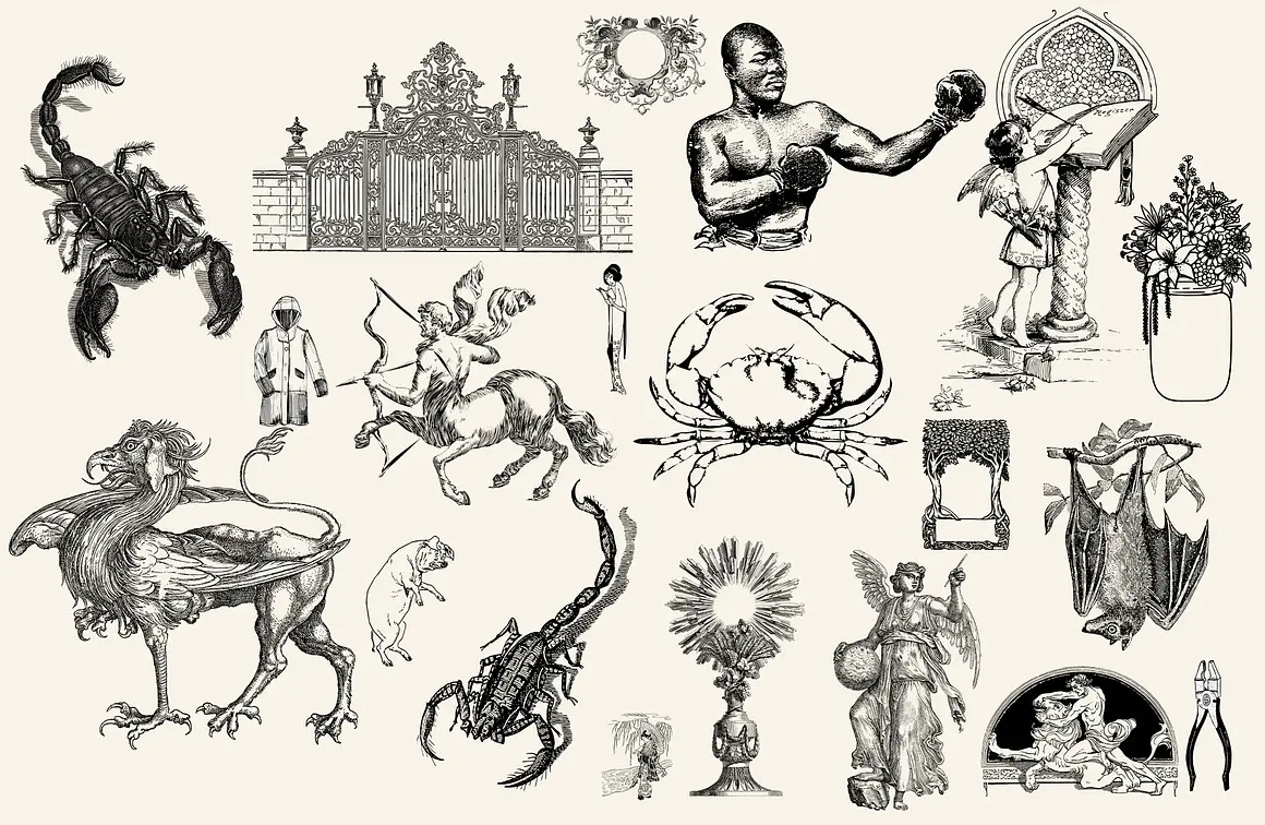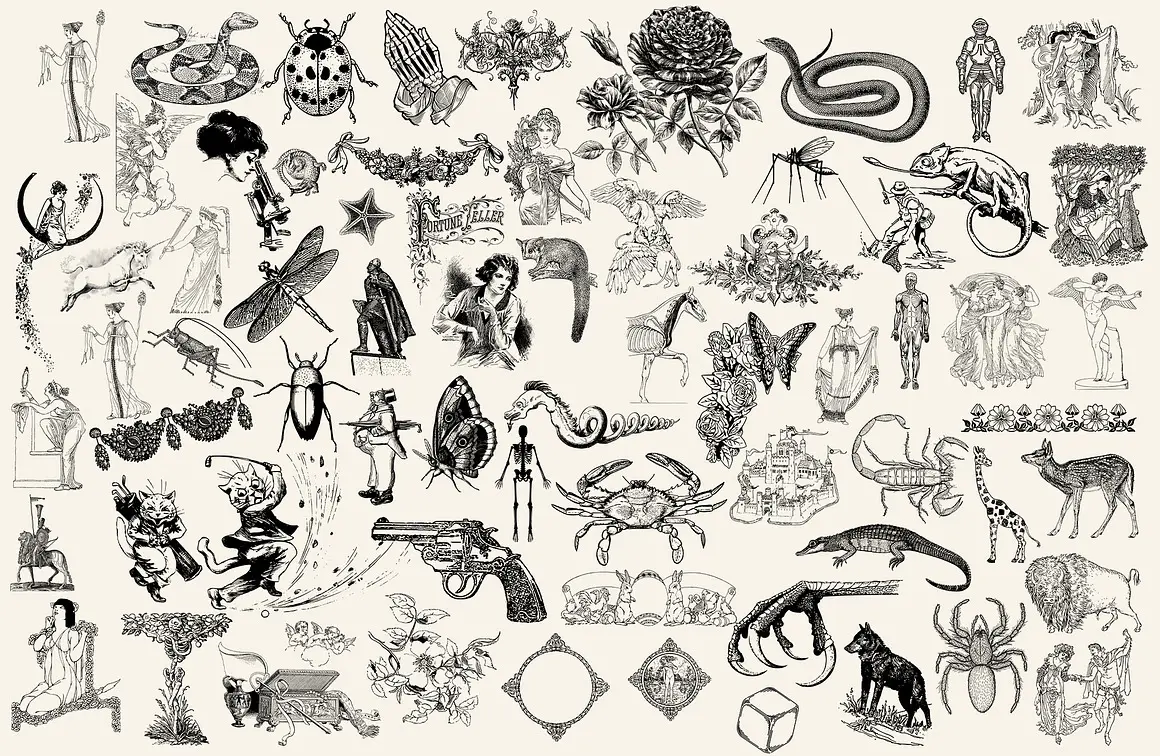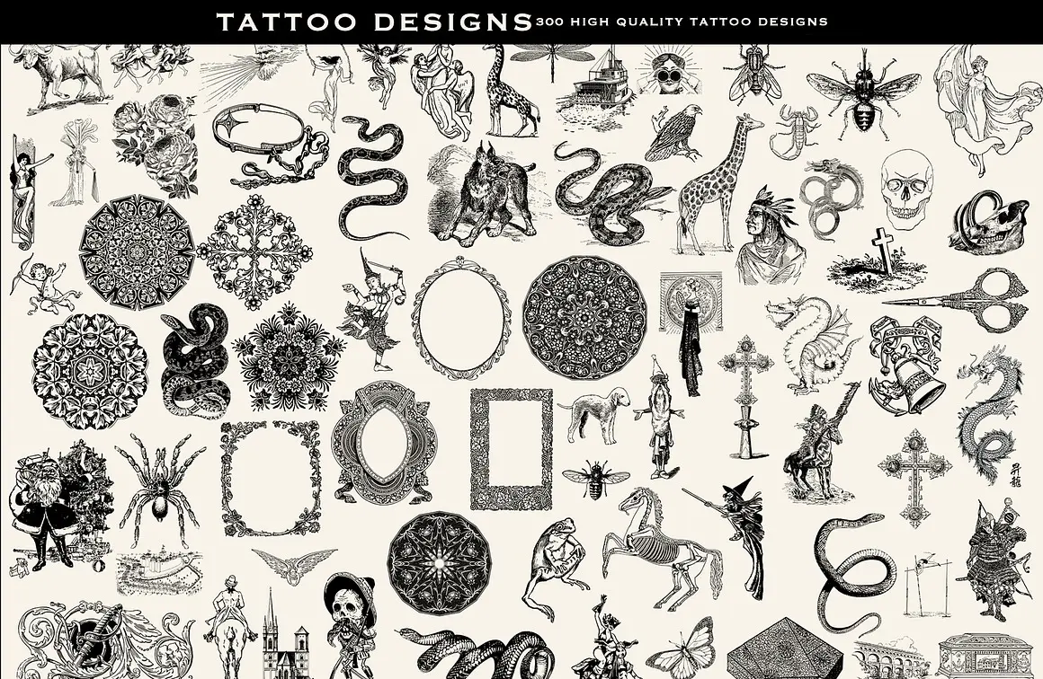 300款PNG格式高分辨率纹身插图集合 300 TATTOO DESIGNS
