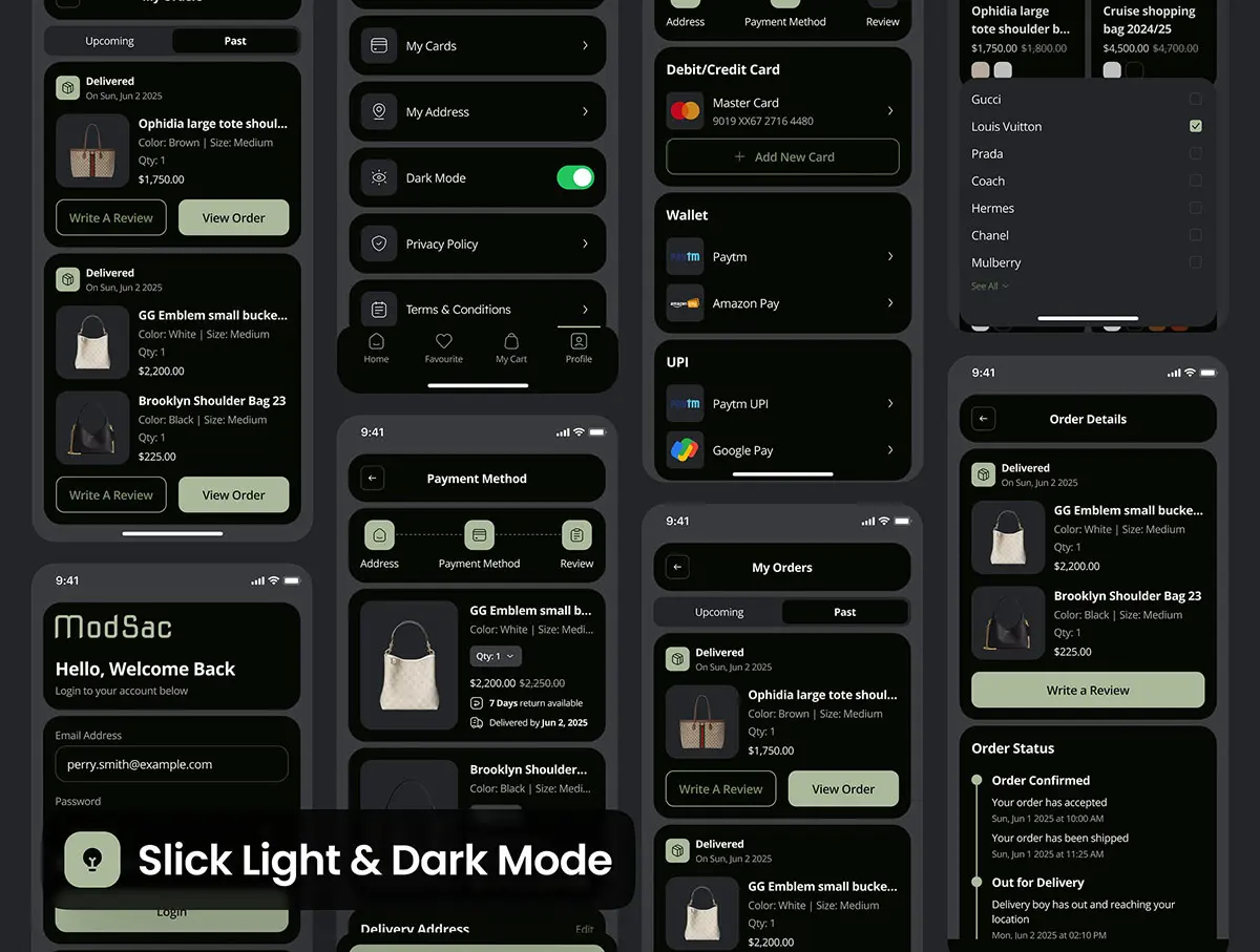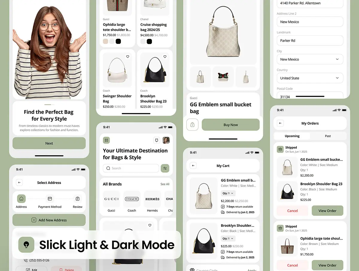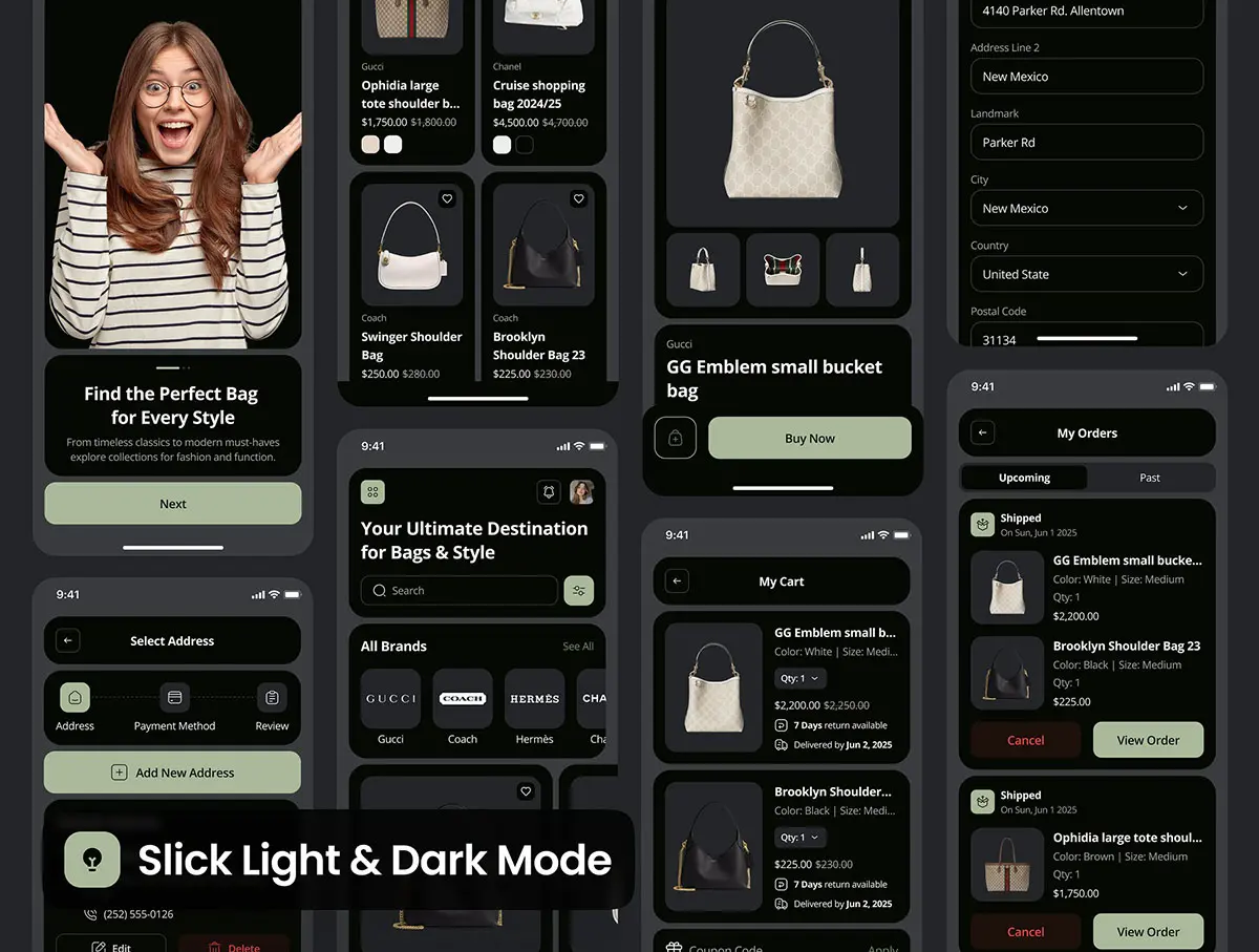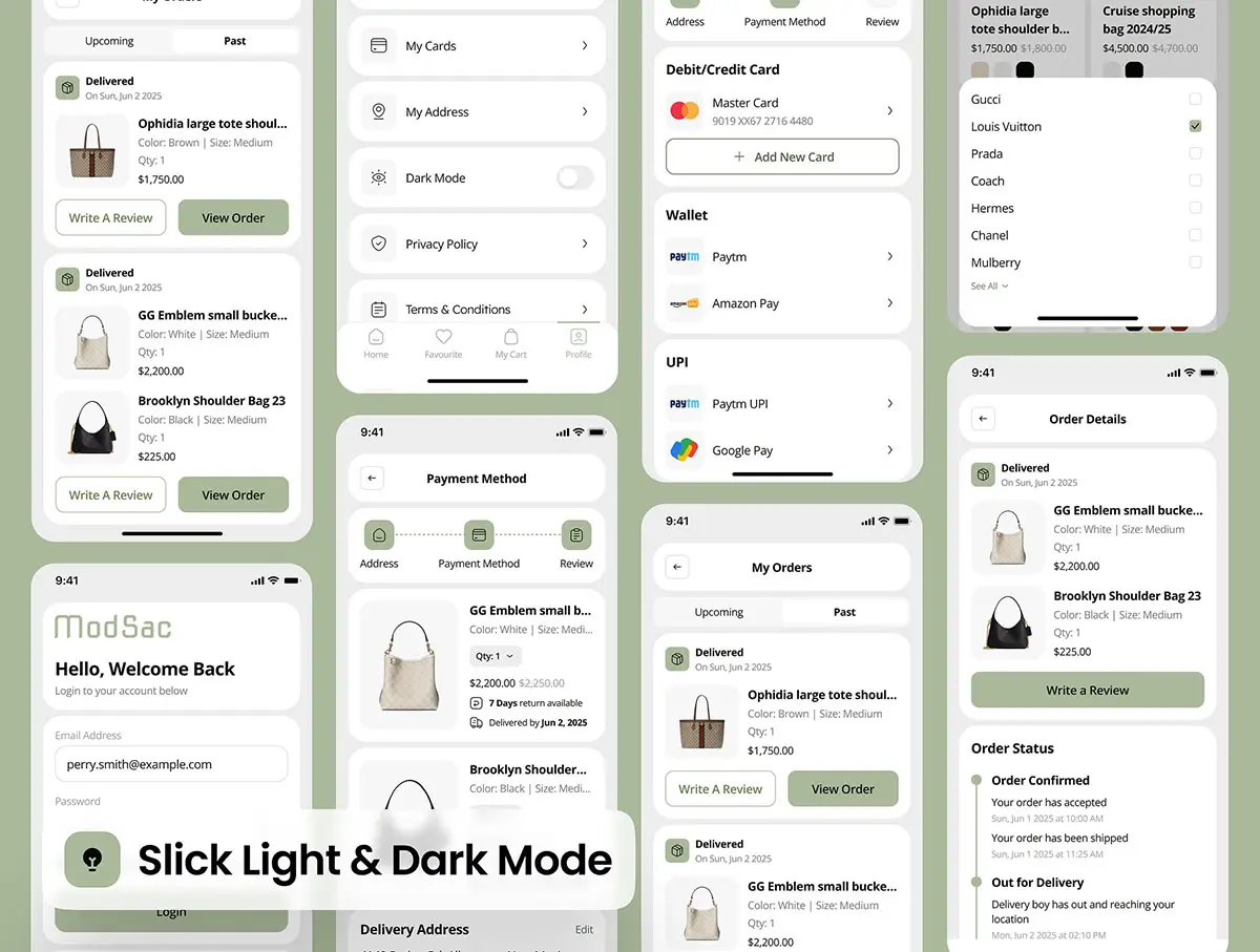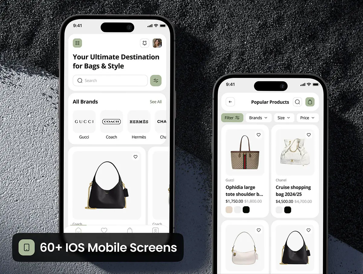 奢品包包移动电商手机app在线商城ui界面套件 modsac – Bag Store Ecommerce App UI Kit