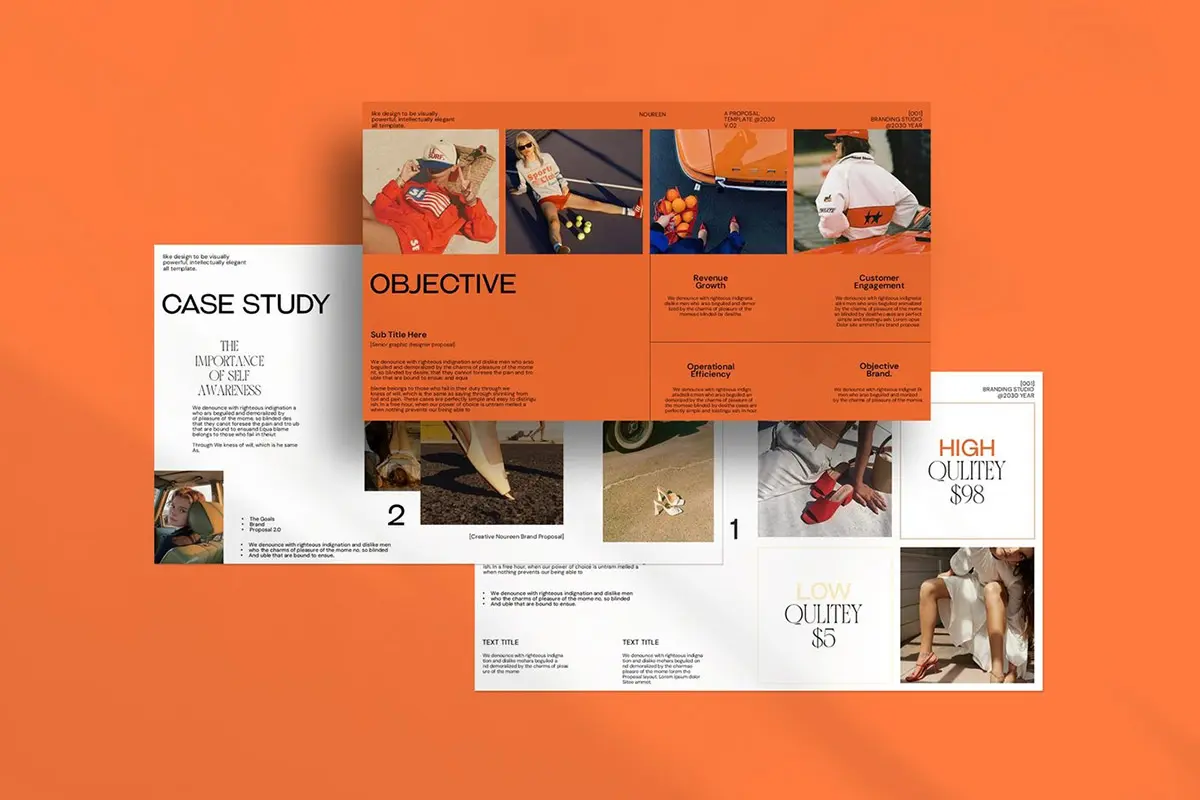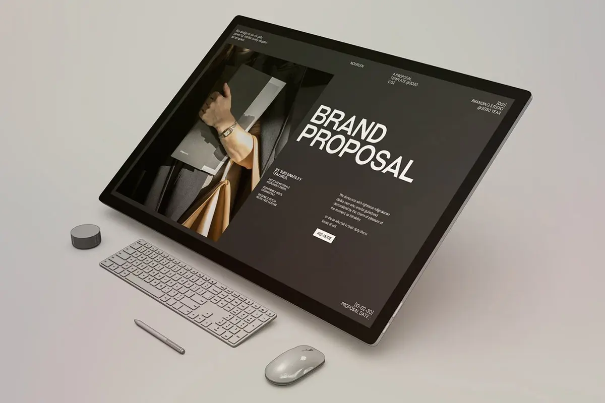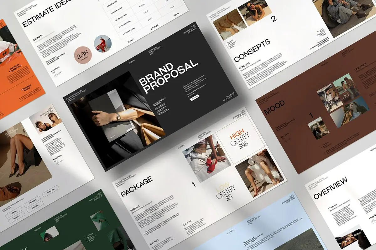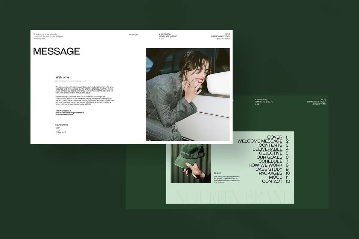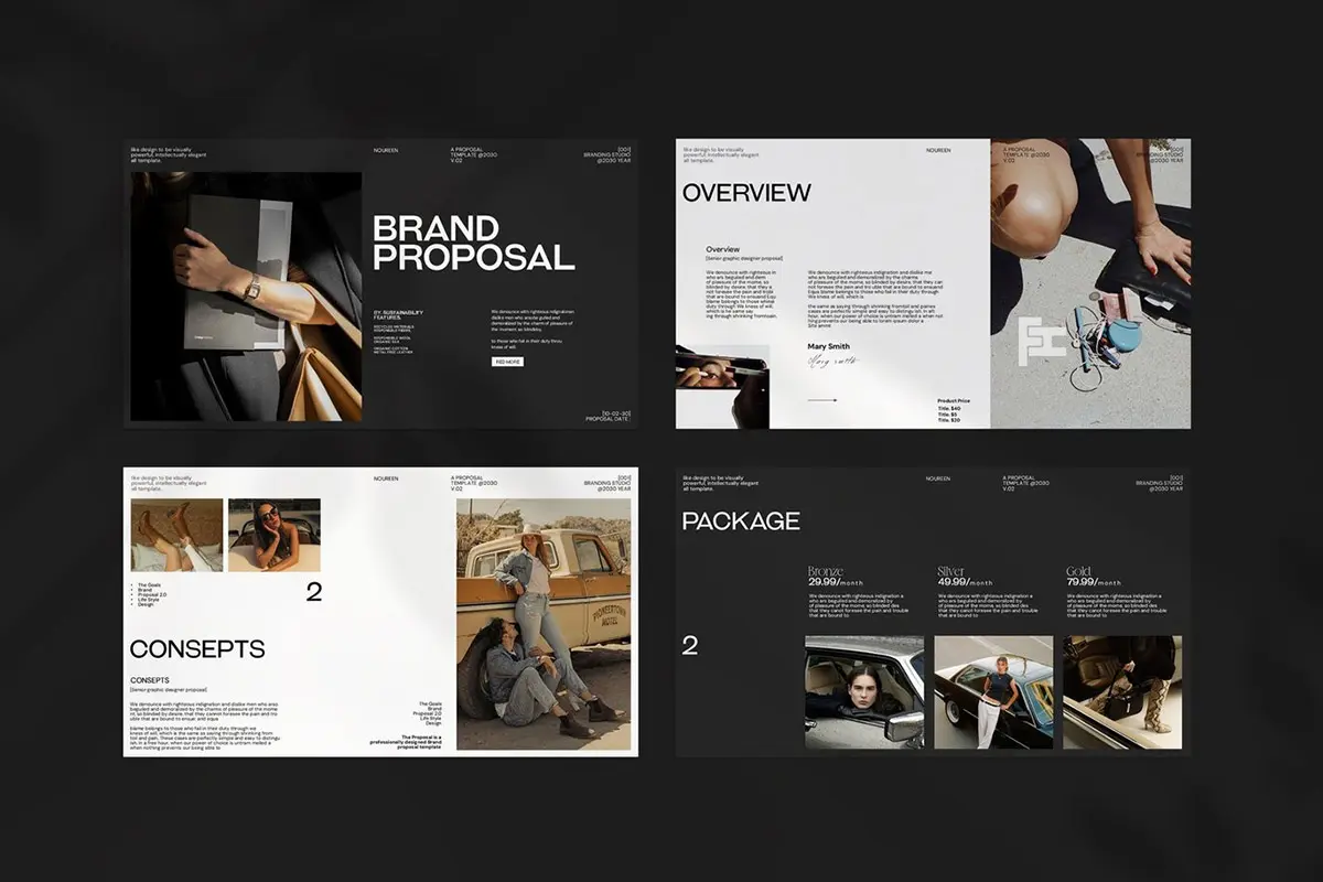 24页现代时尚简约品牌提案创意设计师简历汇报作品集ppt演示模板 Noureen Brand Proposal PowerPoint Template