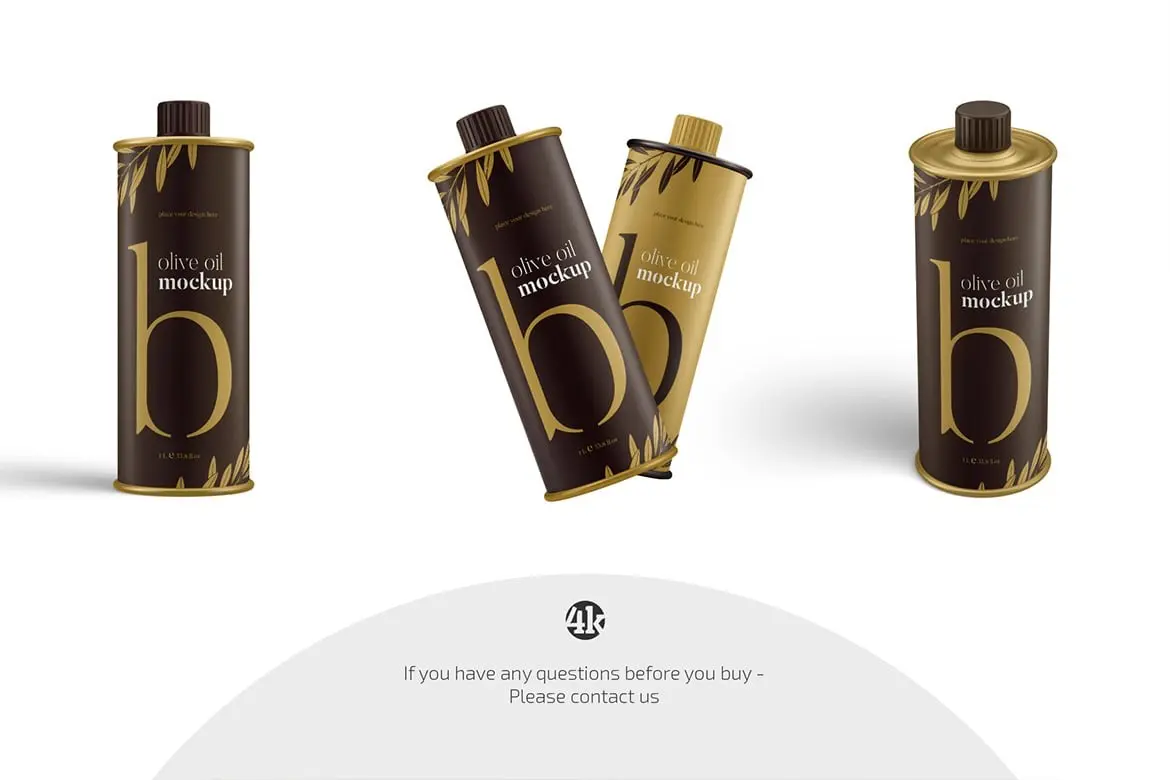 橄榄油金属瓶模型品牌logo包装设计贴图ps样机素材模板 Olive Oil Metal Bottle Mockup Set