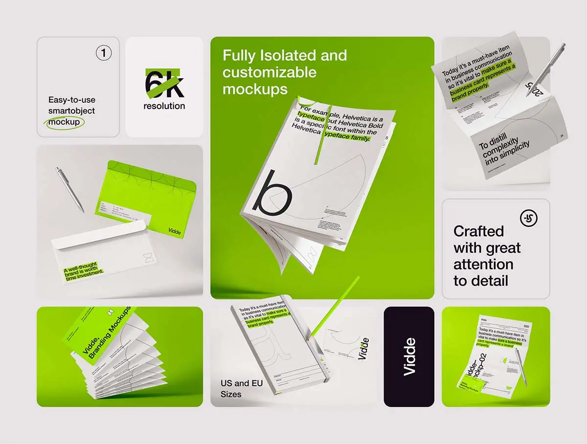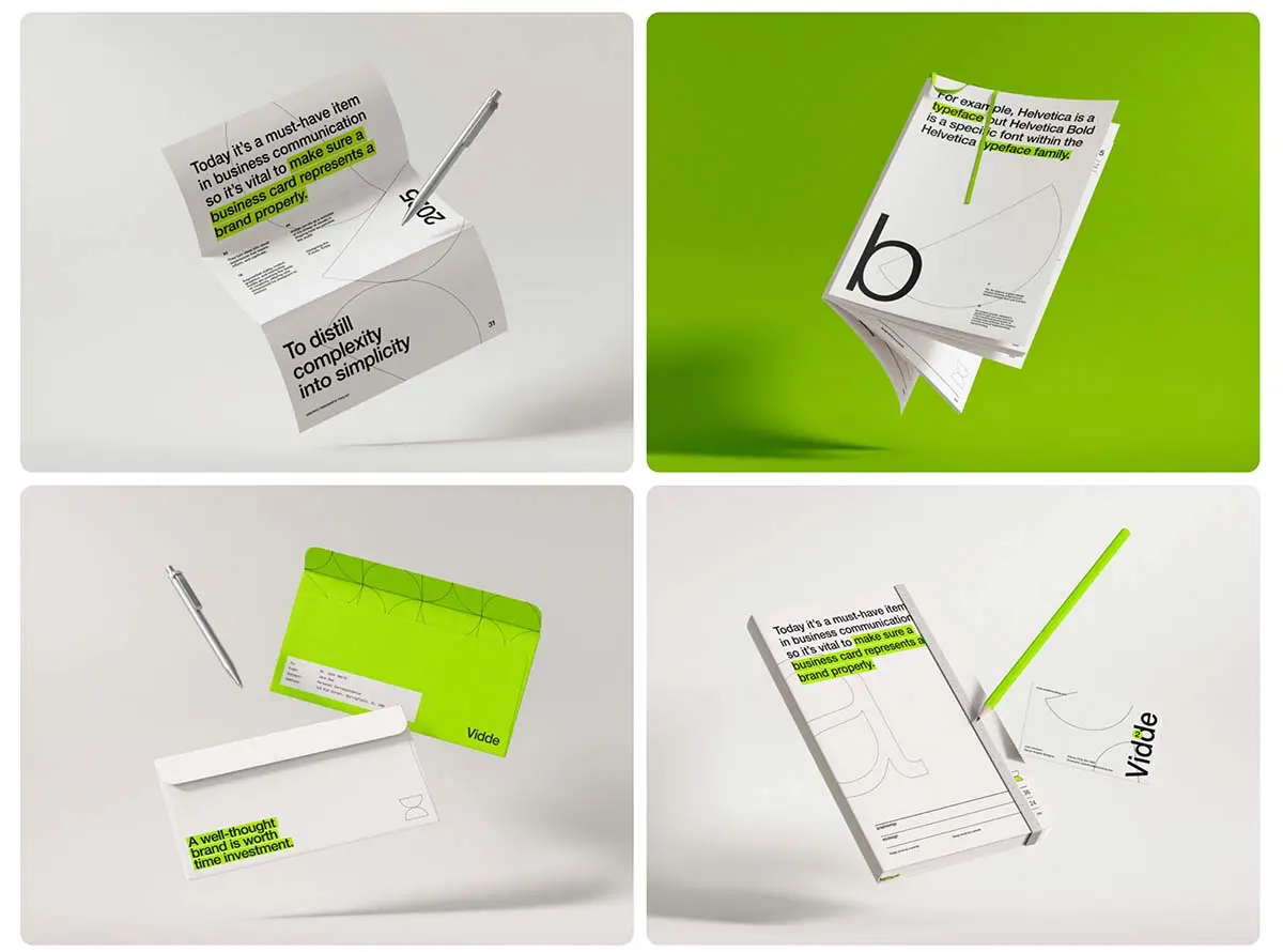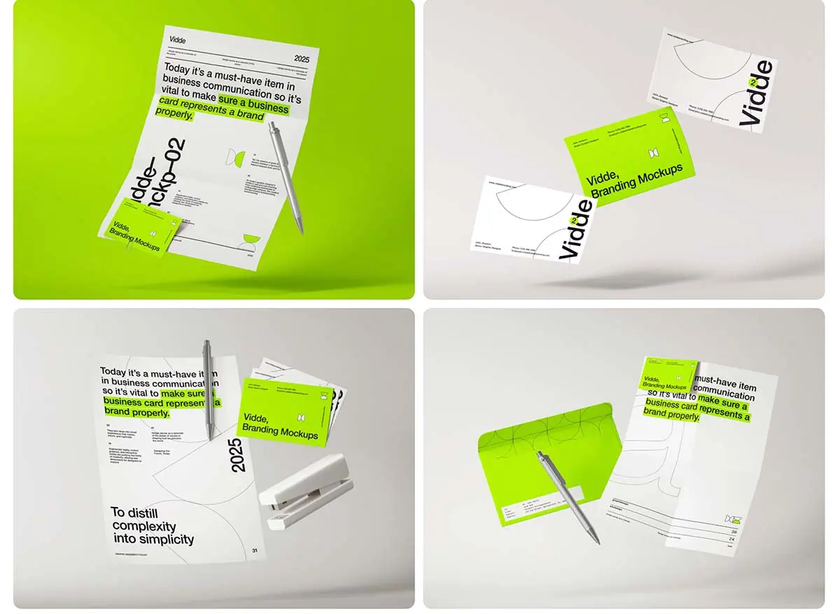 16款名片信纸信封文具封面品牌VI应用设计作品展示效果图ps样机 Vidde Branding Mockups