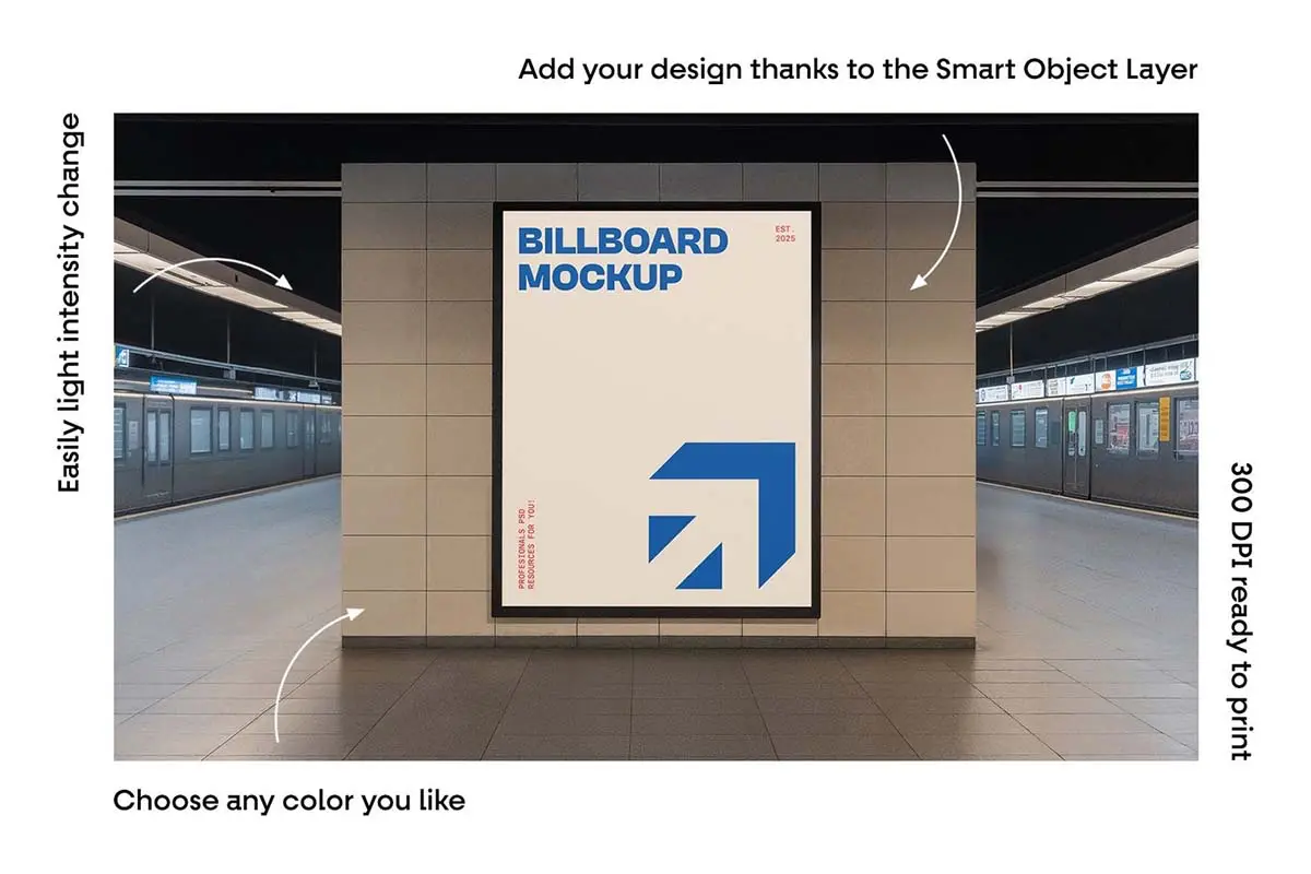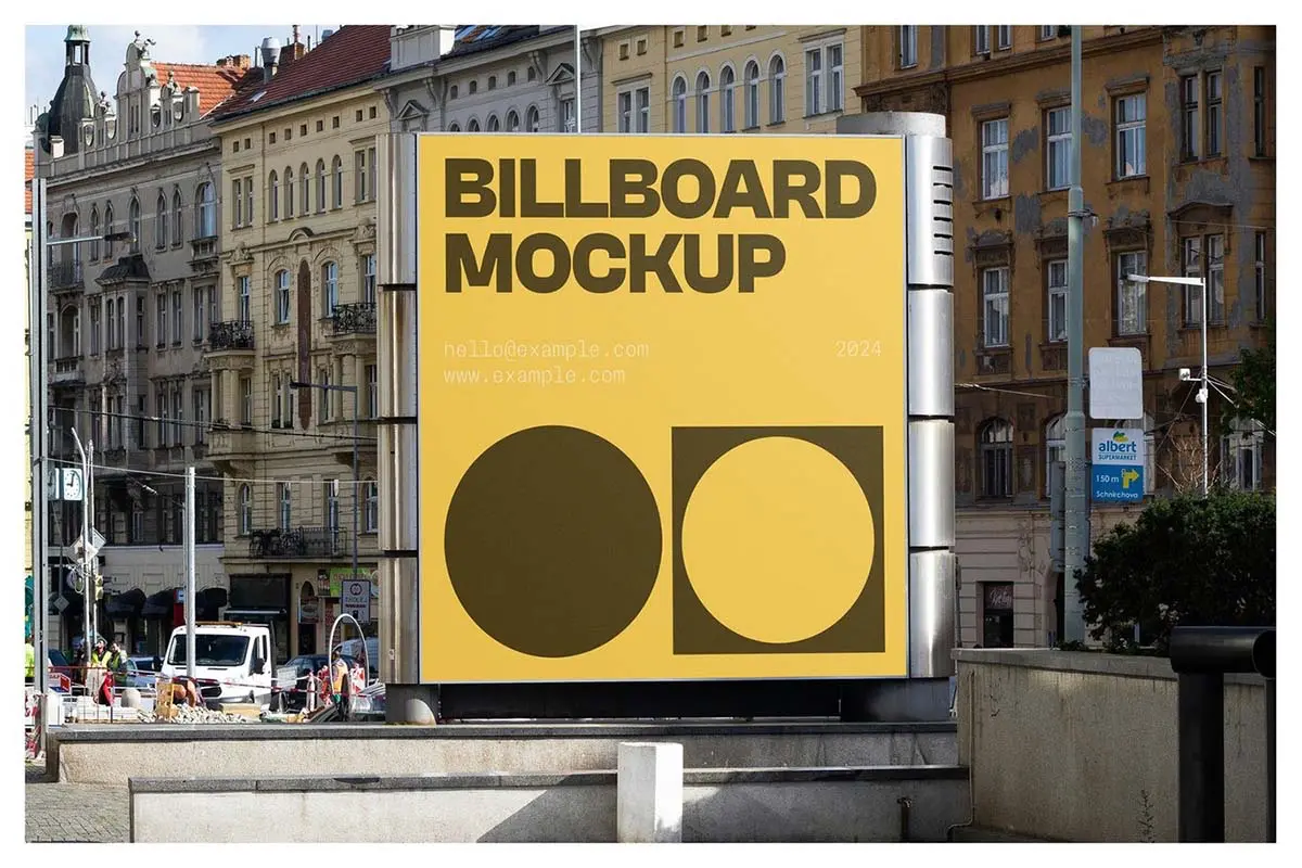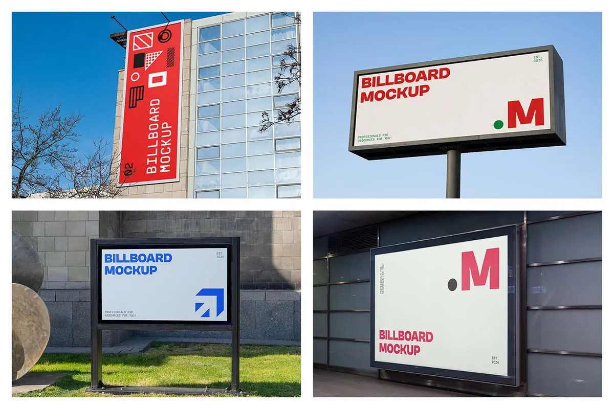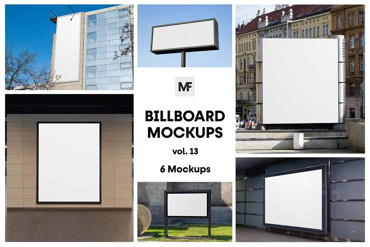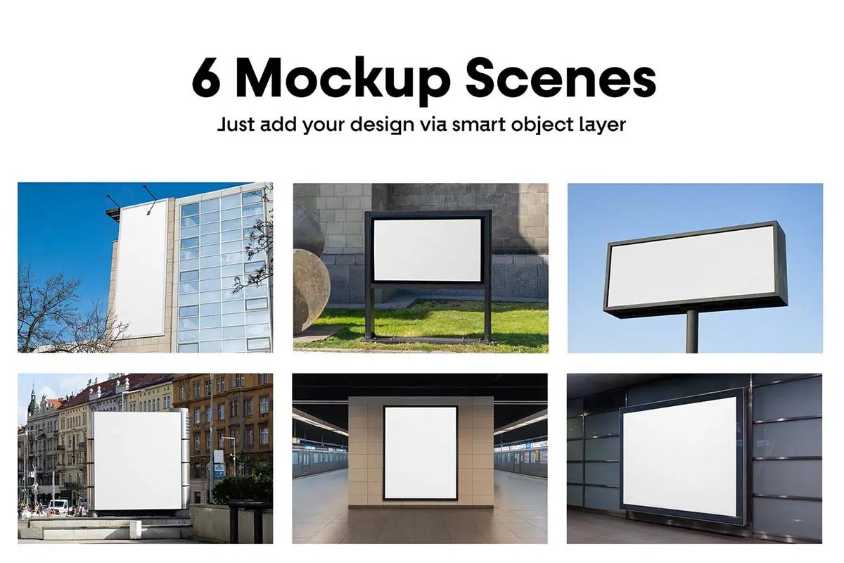 6款户外墙面横幅广告牌海报框架模型展示设计贴图psd样机素材 Commercial Billboard Mockups vol.13