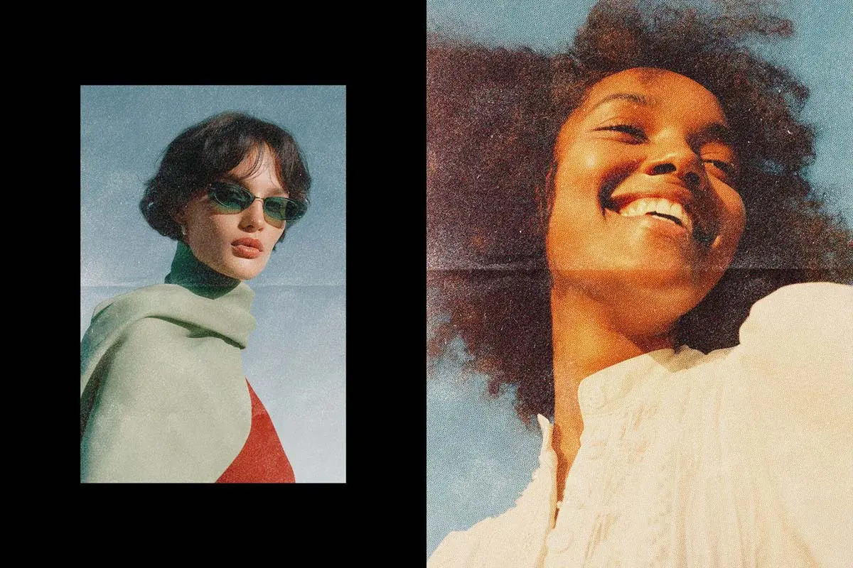 潮流复古怀旧褪色折痕印刷磨损肌理滤镜人像照片后期ps特效样机 Retro Print Photo Effect