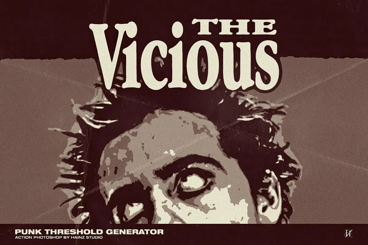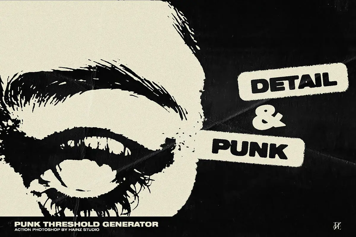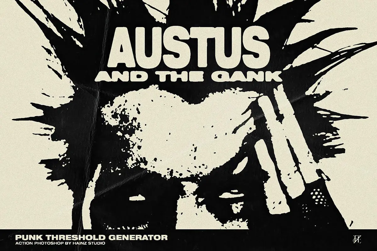 80年代复古潮流叛逆街头摇滚朋克涂鸦单色粗糙ps动作艺术特效插件 Punk Threshold Generator