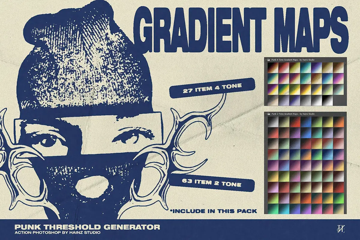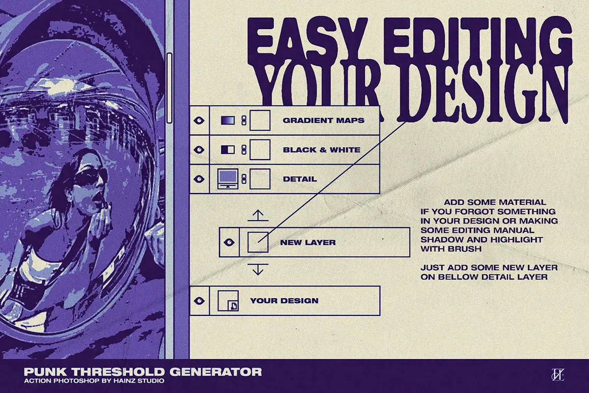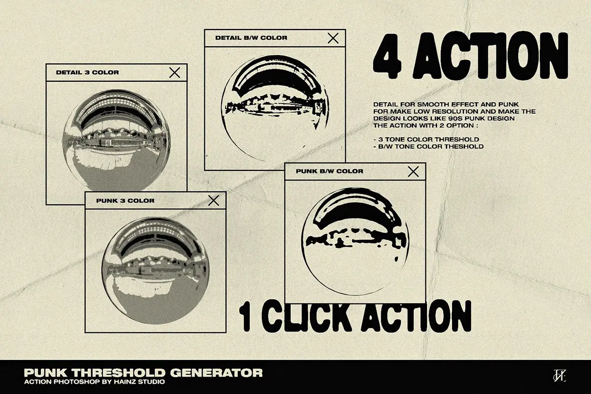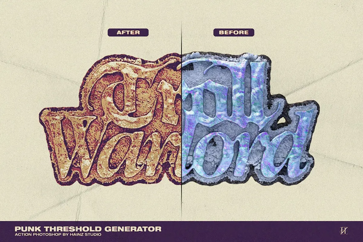 80年代复古潮流叛逆街头摇滚朋克涂鸦单色粗糙ps动作艺术特效插件 Punk Threshold Generator