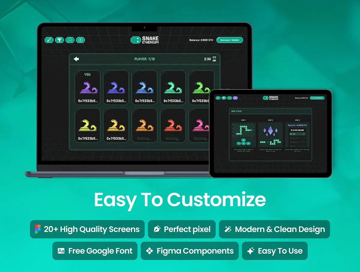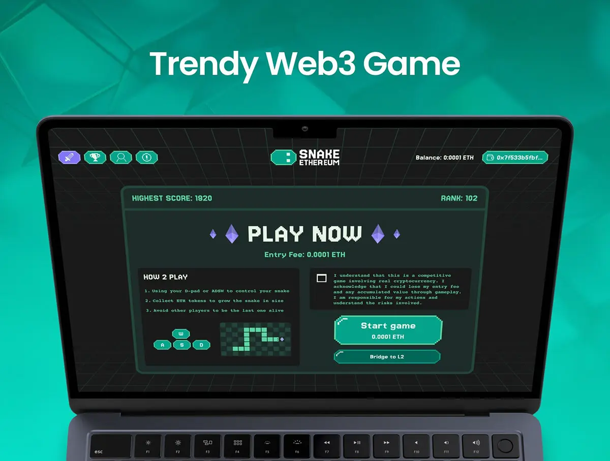 经典贪吃蛇Web游戏加密货币奖励网页界面设计ui套件 Snake Ethereum Web game