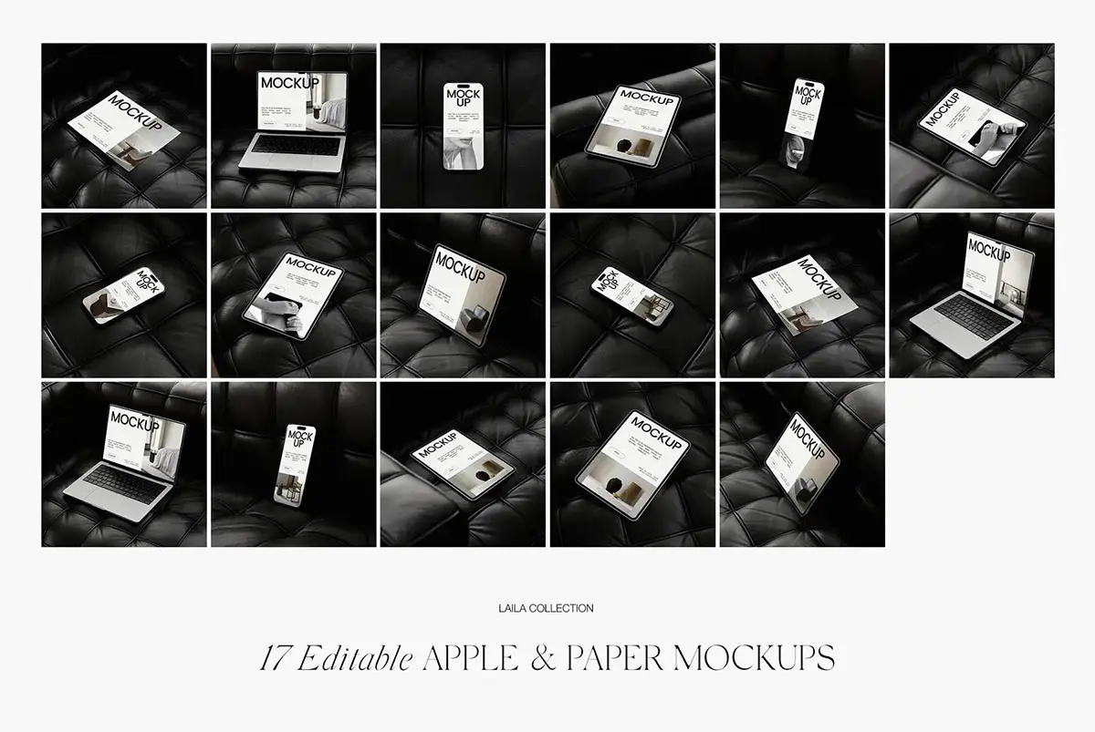 17款工业风iPhone手机iPad平板Macbook笔记本电脑单页ps样机素材 Laila Mockups Graphics