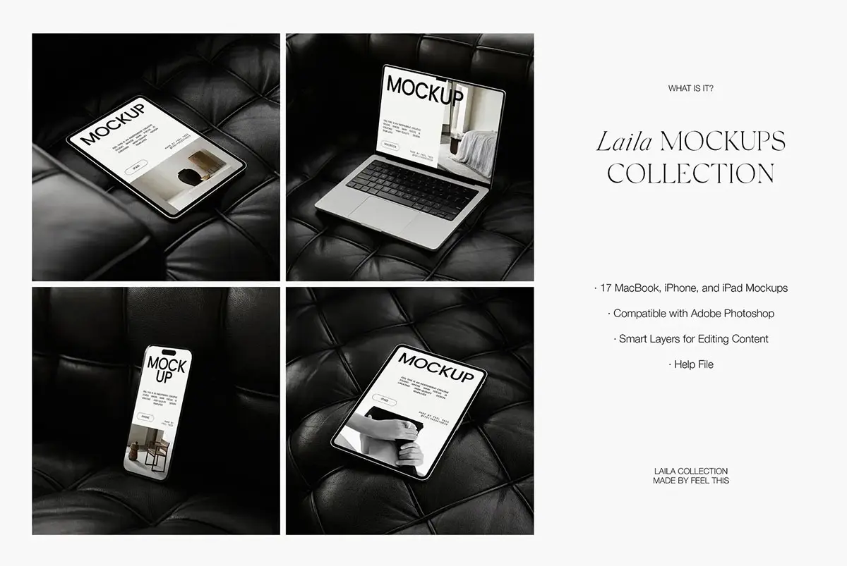 17款工业风iPhone手机iPad平板Macbook笔记本电脑单页ps样机素材 Laila Mockups Graphics