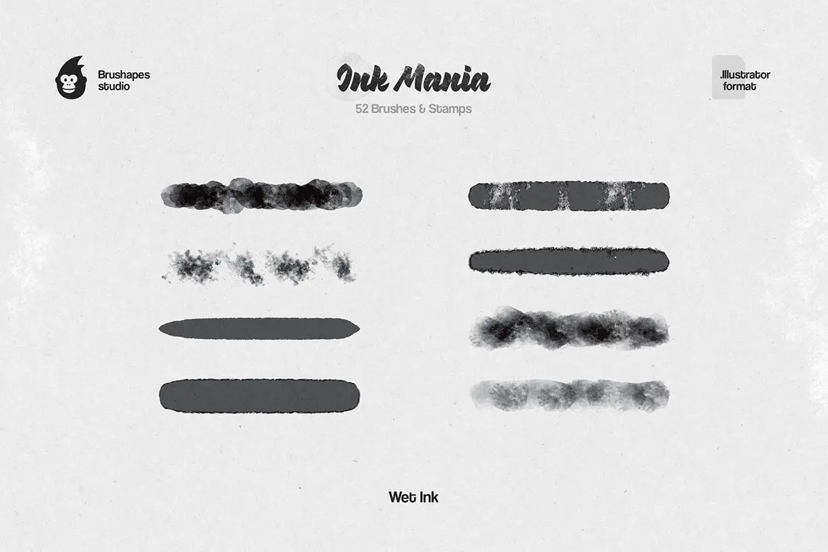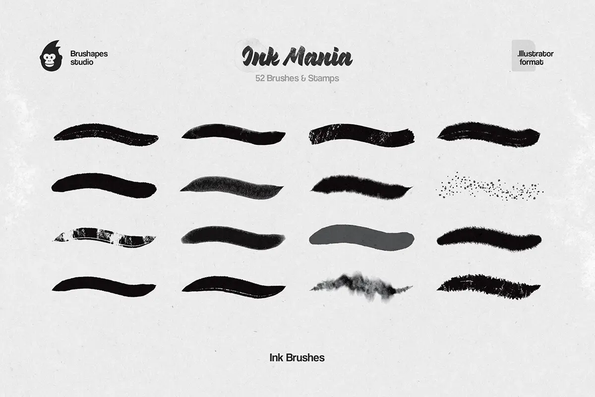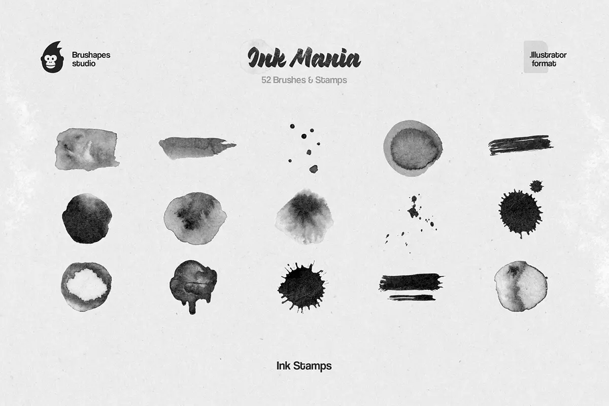 56款水墨水彩印章数字绘画效果AI/Affinity/Procreate/Photoshop矢量笔刷画笔素材 Ink Mania Brushes