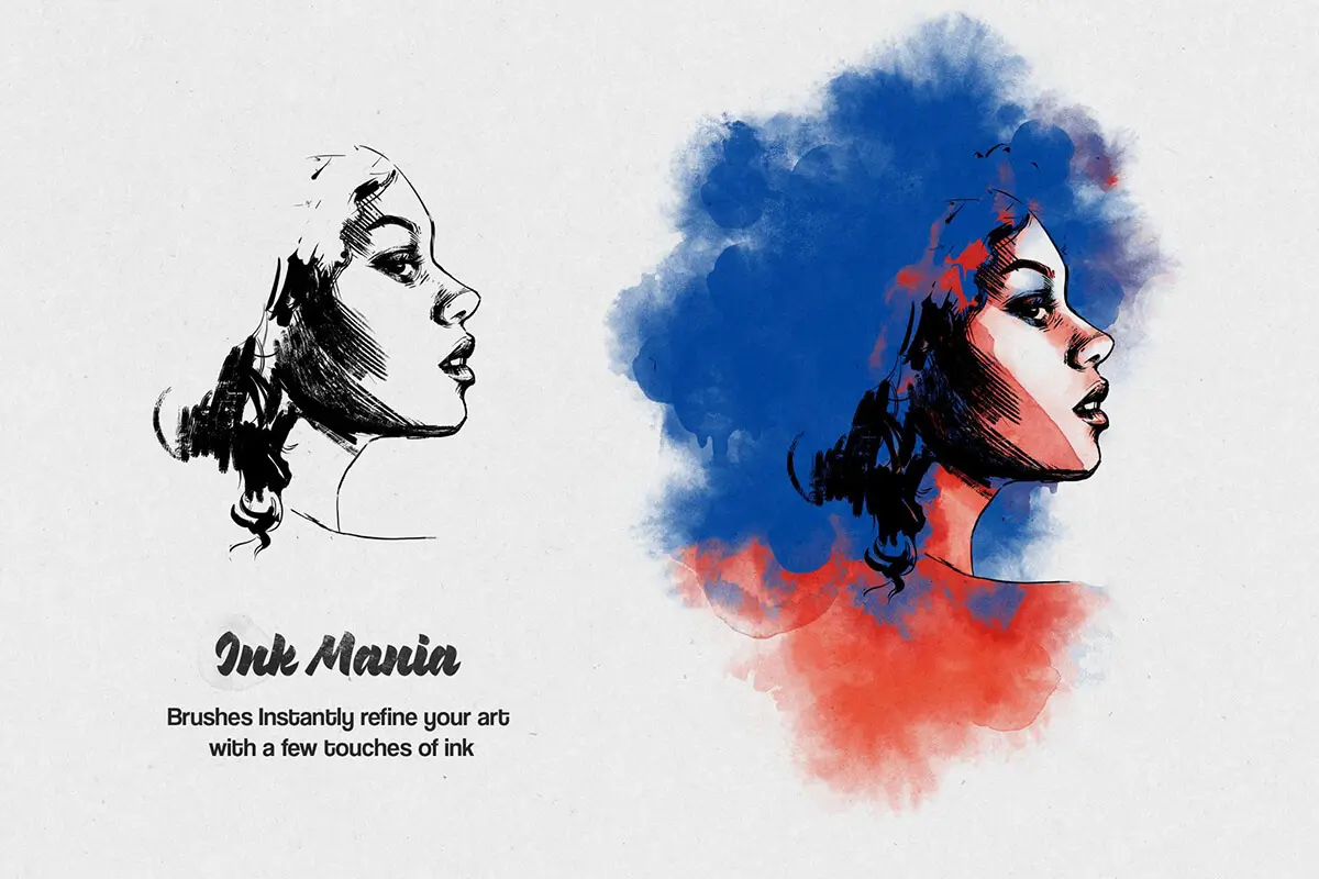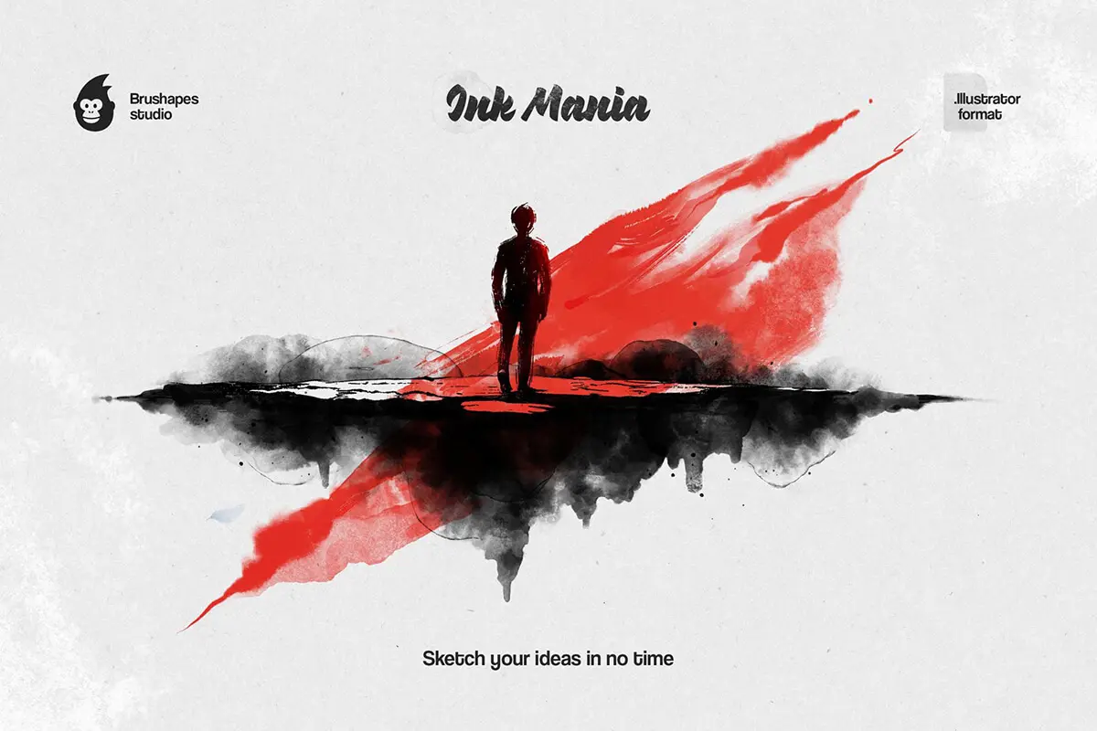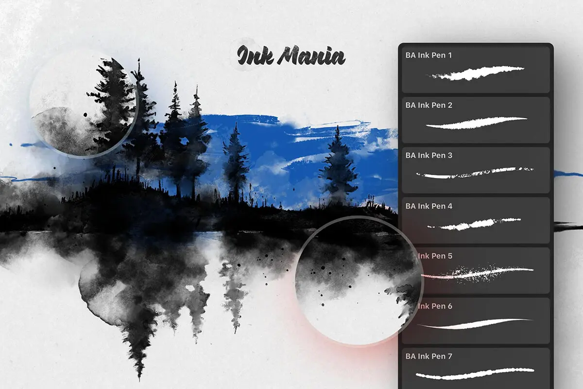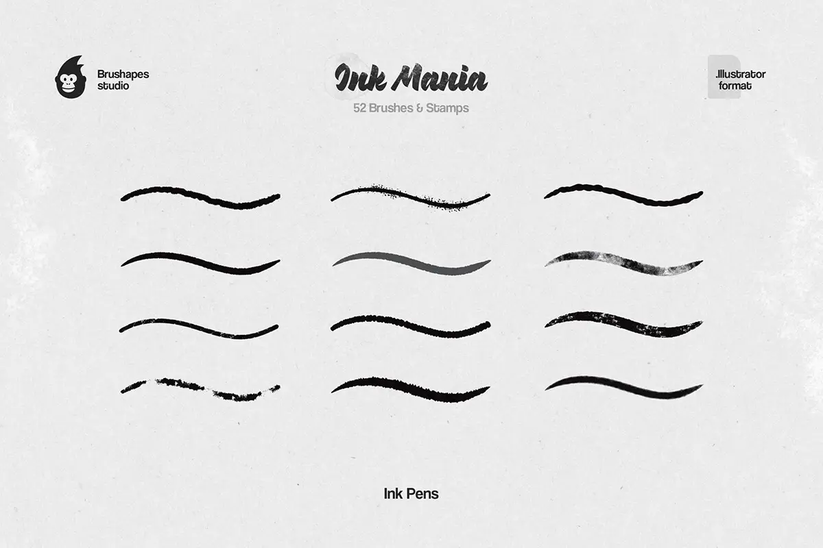 56款水墨水彩印章数字绘画效果AI/Affinity/Procreate/Photoshop矢量笔刷画笔素材 Ink Mania Brushes