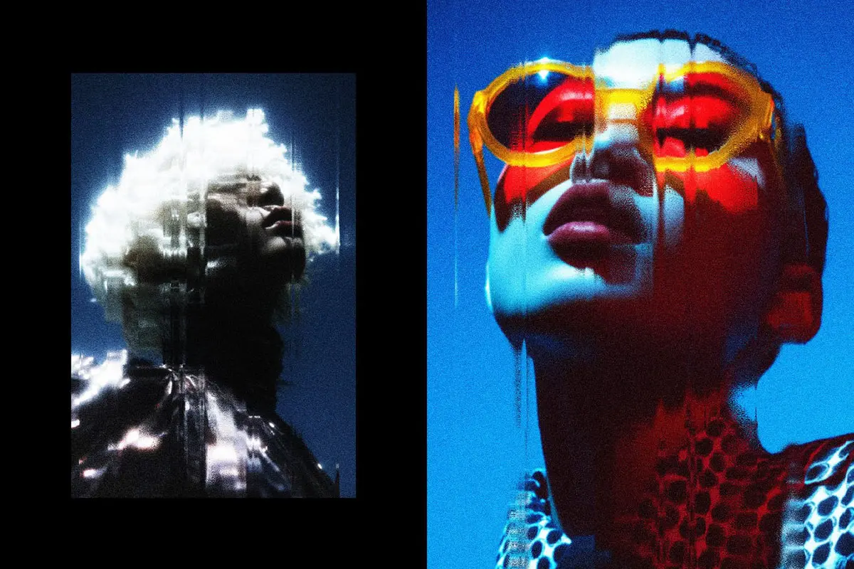 潮流复古条纹故障风长虹玻璃扭曲错位噪点人像照片后期ps特效样机 Distort Photo Effect