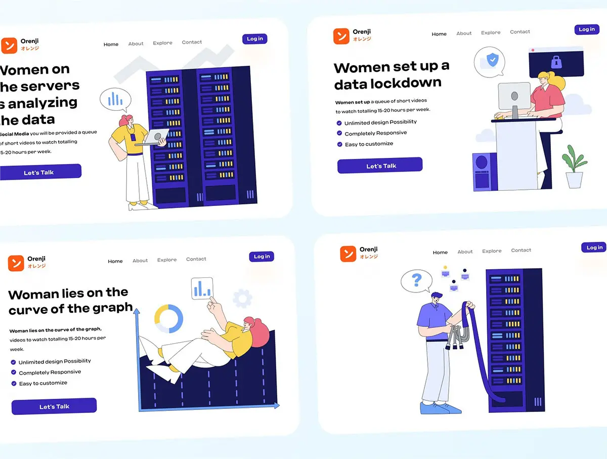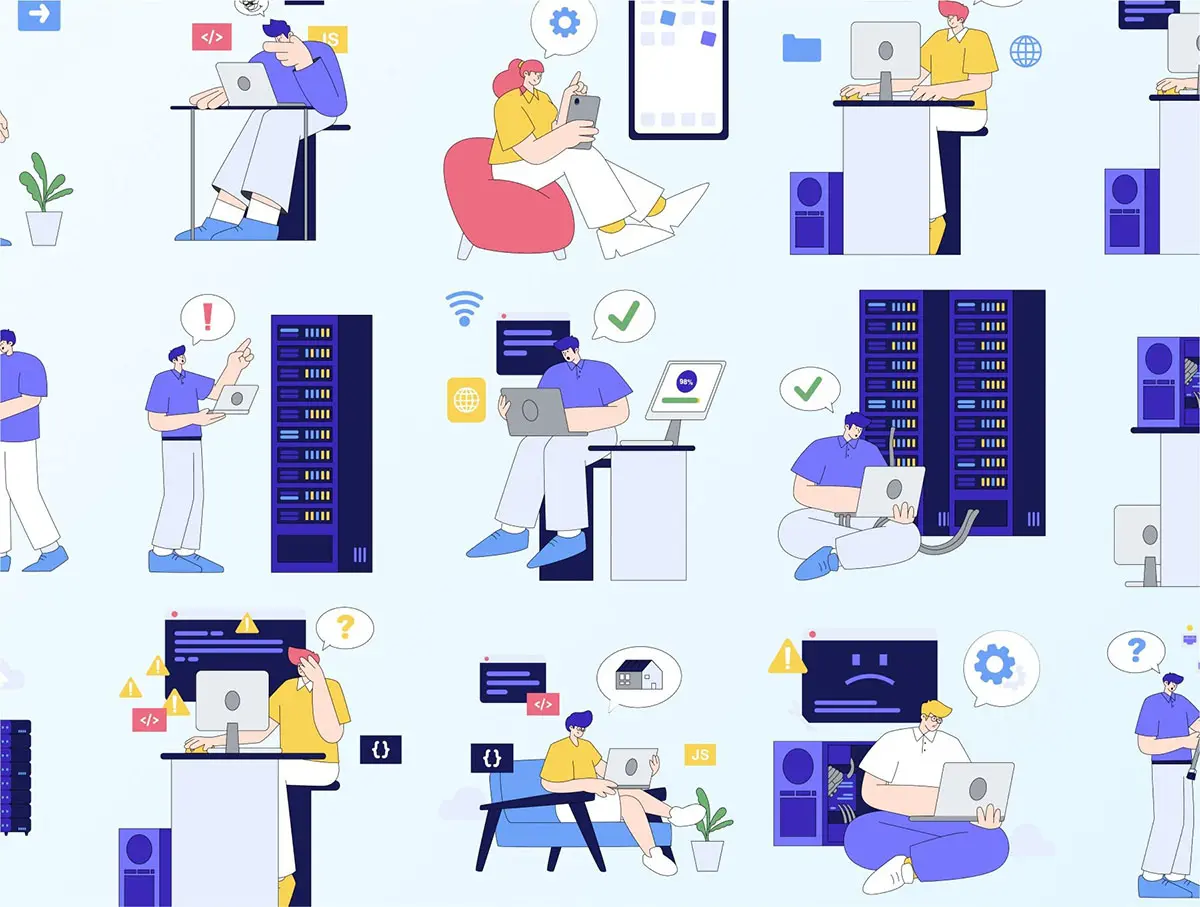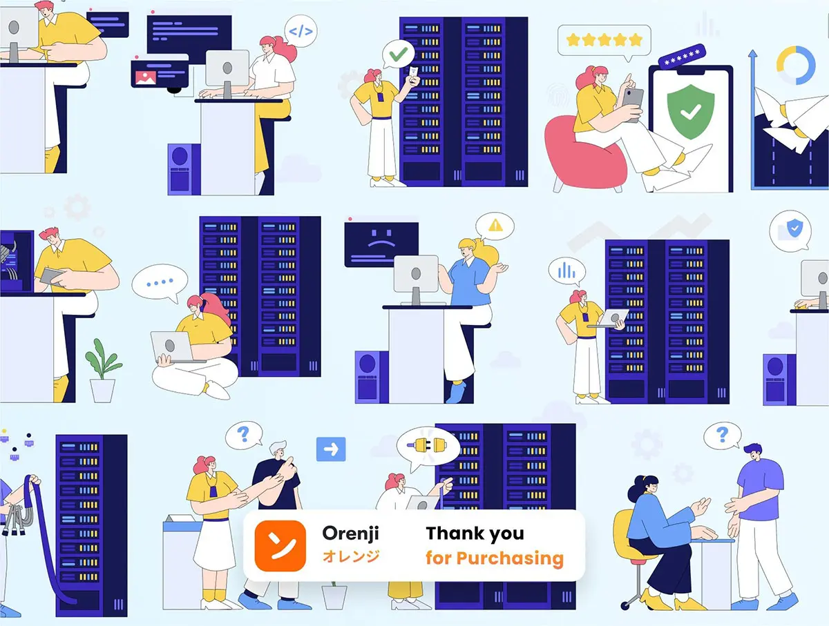 25款云计算数据中心网络安全SaaS服务科技矢量插图设计素材 Hosting & Server Technology Illustration Pack