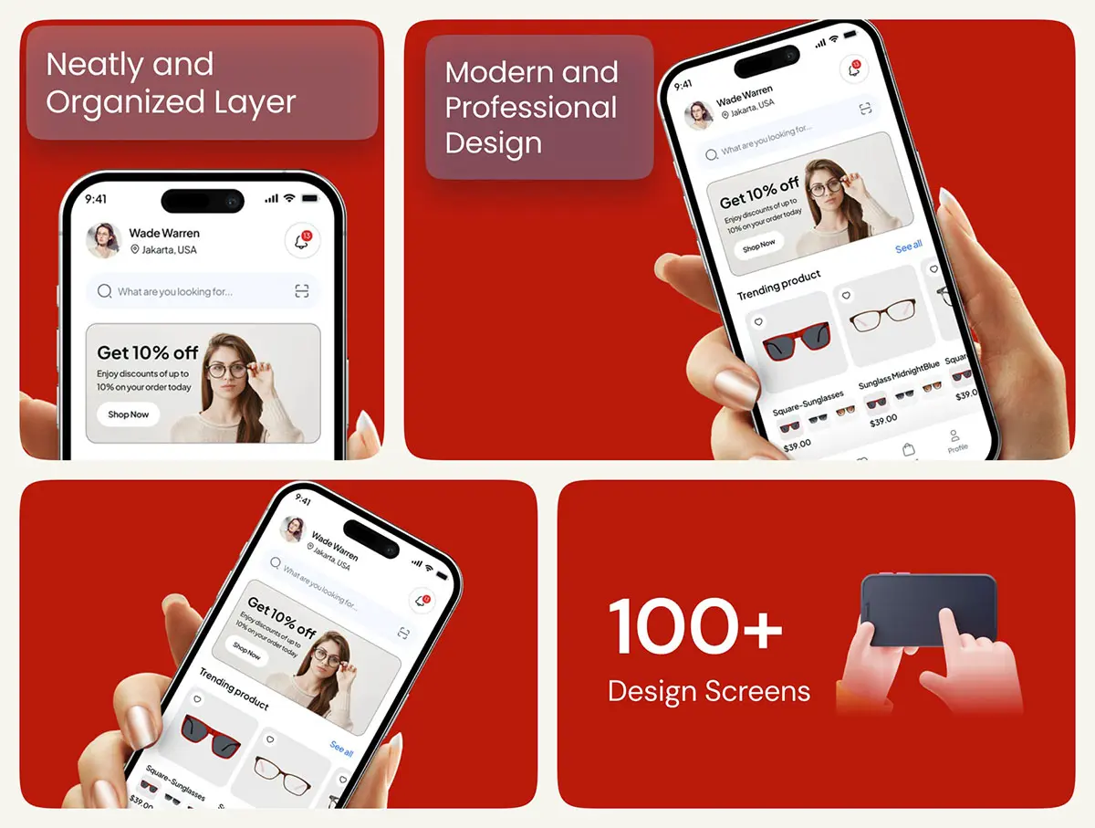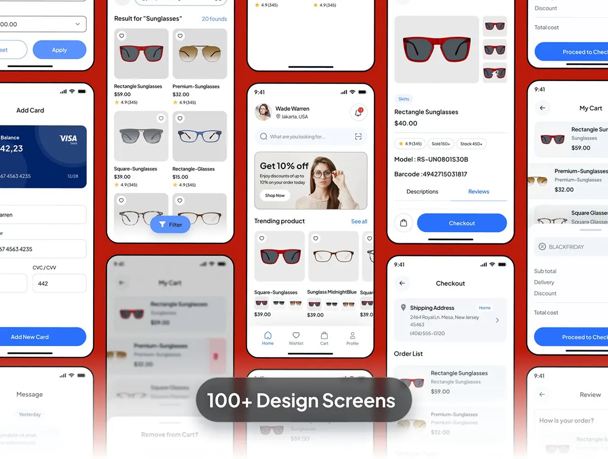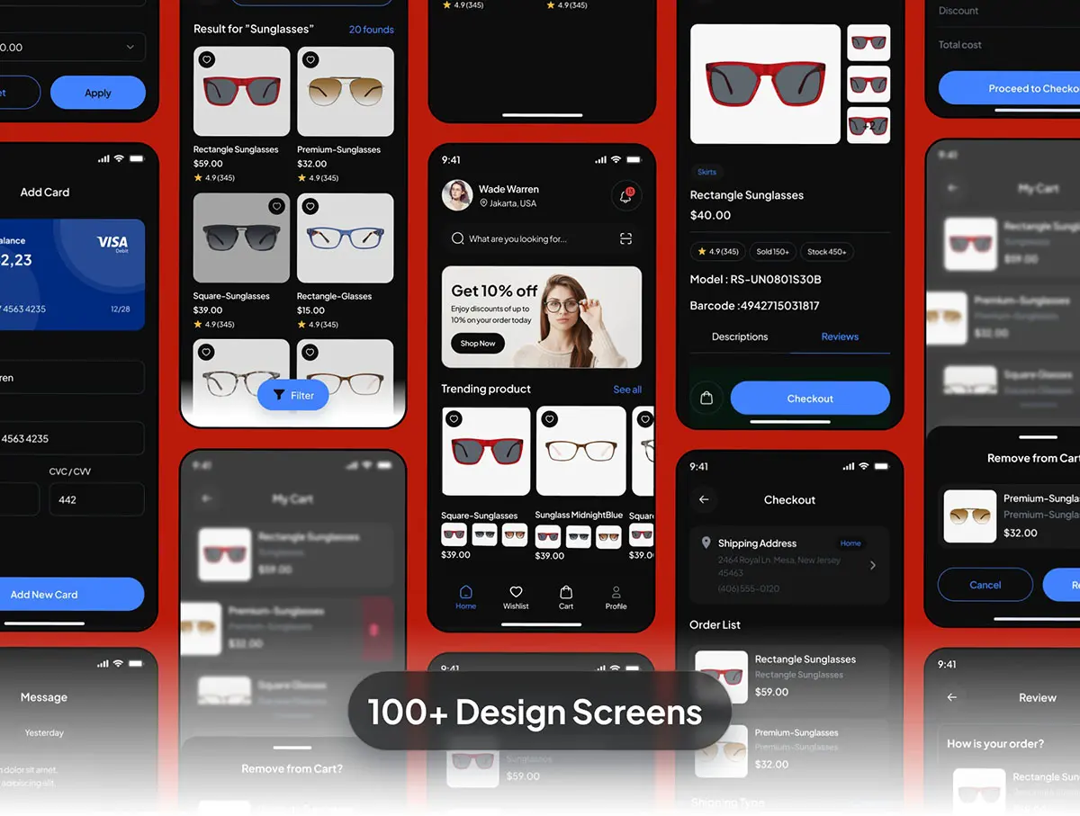 眼镜店在线商城手机电商app界面设计卡片式组件ui模板 Lensilo Eye Glass Shop Mobile App Ui Kit