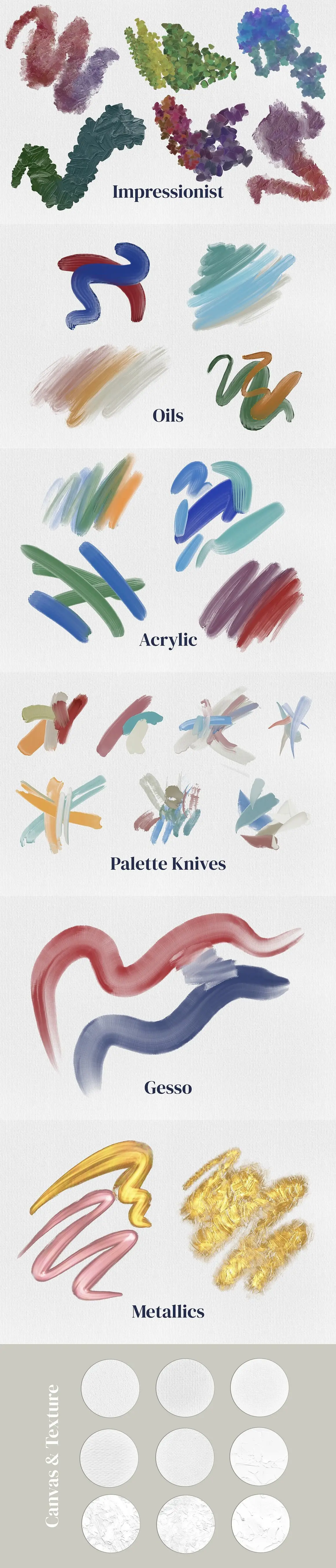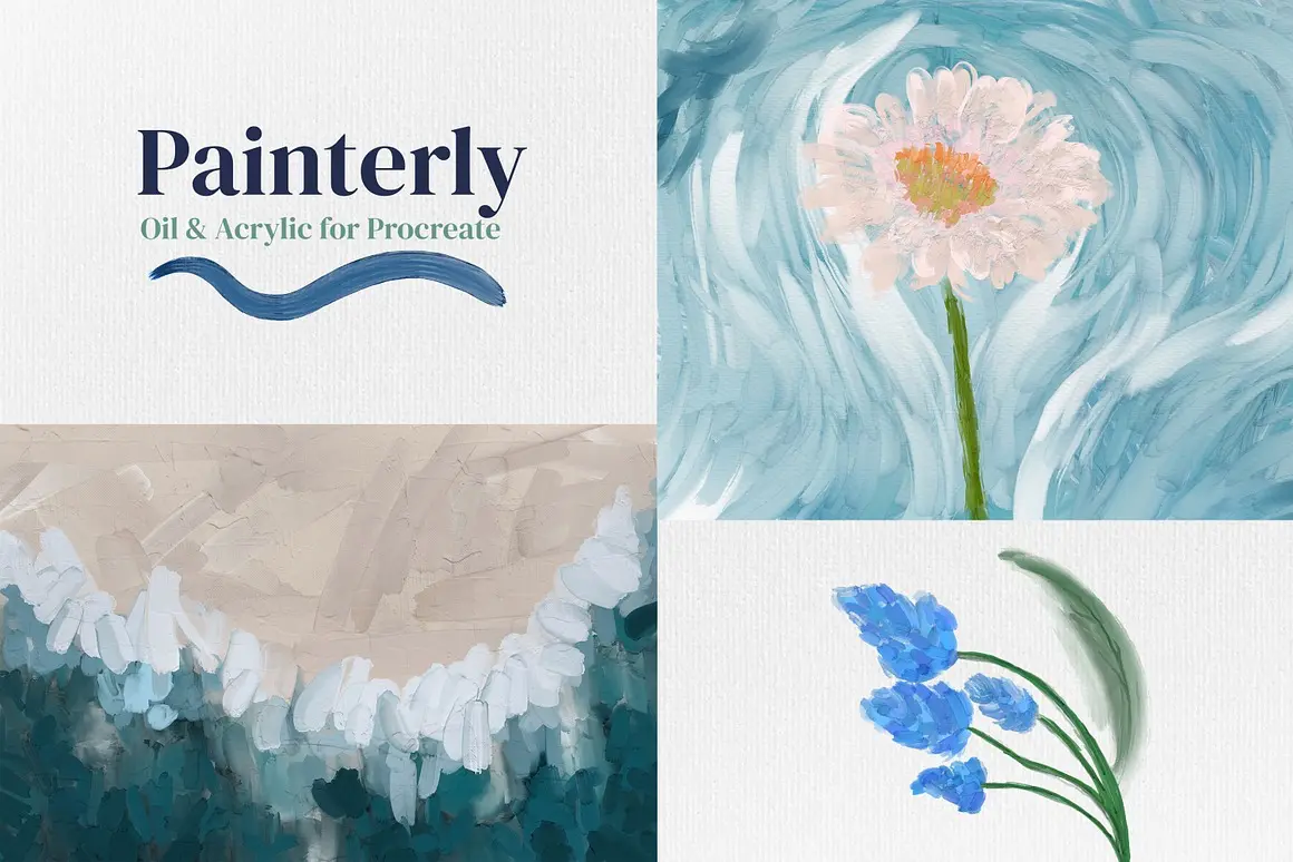 46款复古艺术油画丙烯笔触Procreate绘画笔刷素材 Painterly Brushes for Procreate
