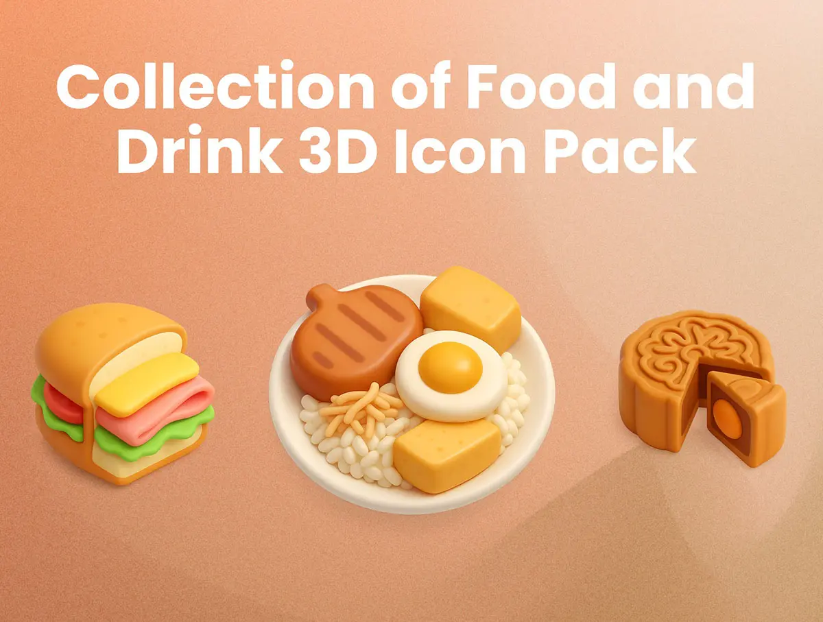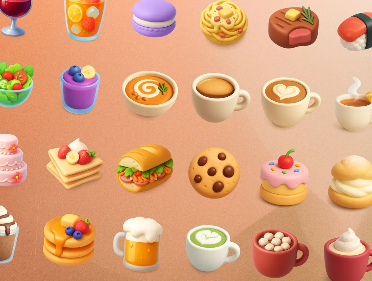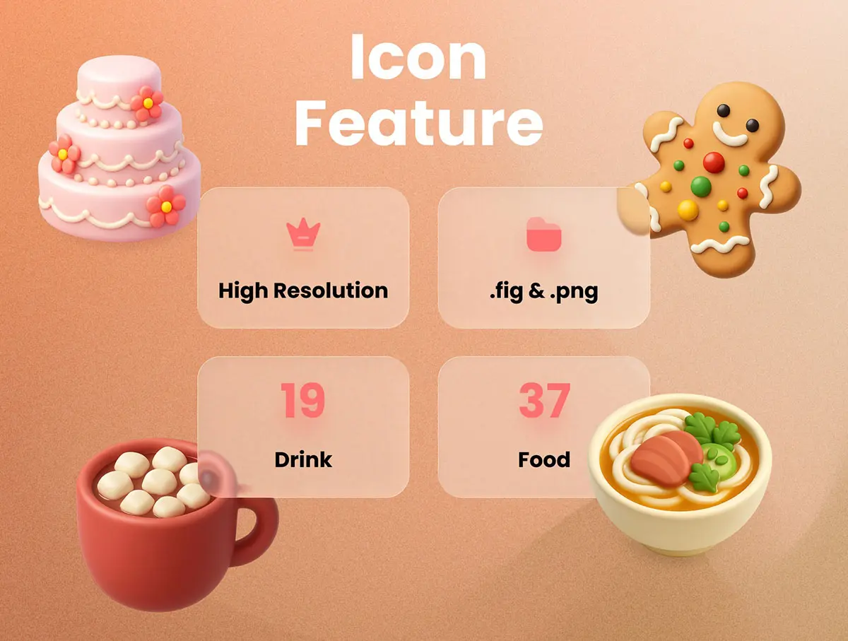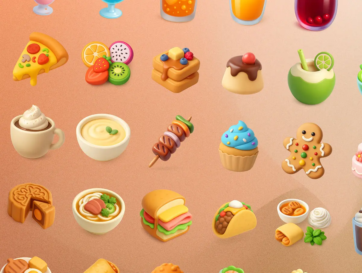 55款逼真活力美食食物饮料3D立体插图图标Icons设计Figma格式素材 Food & Drink 3D Icon Illustrations