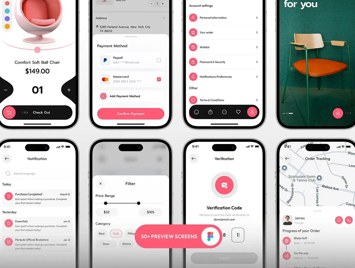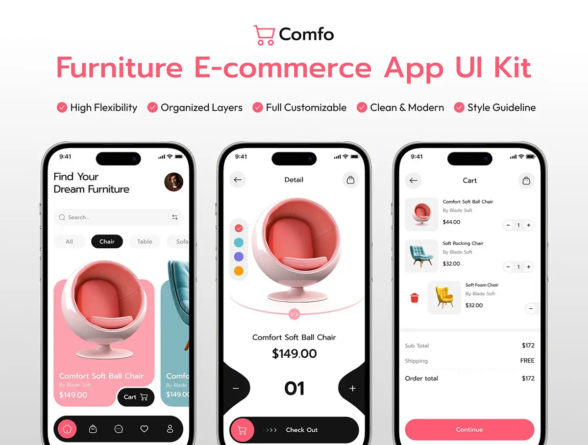 家居电商手机app界面设计欣赏_家居电子商务app界面设计模板下载 Comfo – Furniture Ecommerce Mobile UI Kit
