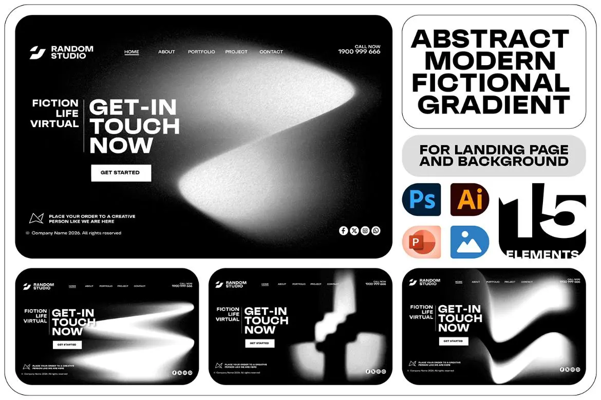 15款单色抽象扭曲模糊渐变艺术颗粒纹理背景图片设计素材 Abstract Grainy Gradient Background