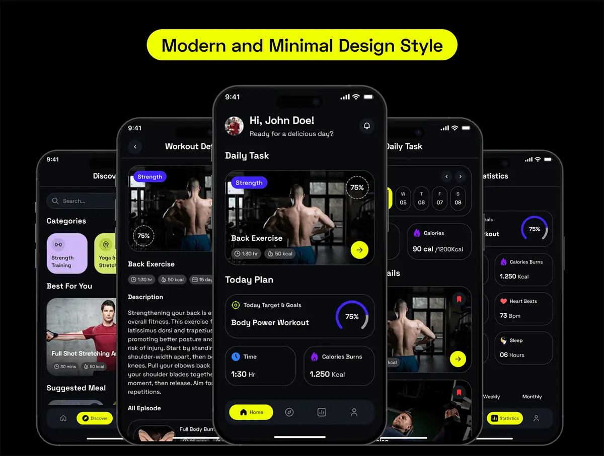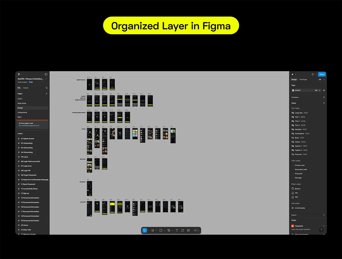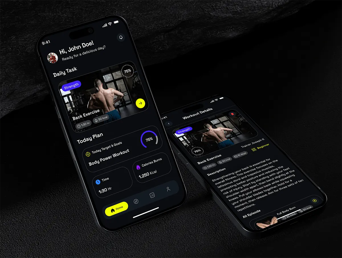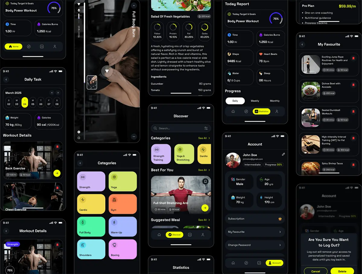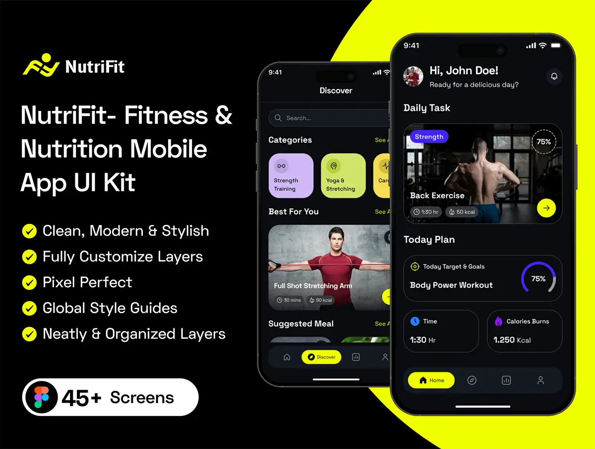 45屏健身锻炼训练在线课程教学app设计用户界面ui套件 NutriFit- Fitness & Nutrition Mobile App UI Kit
