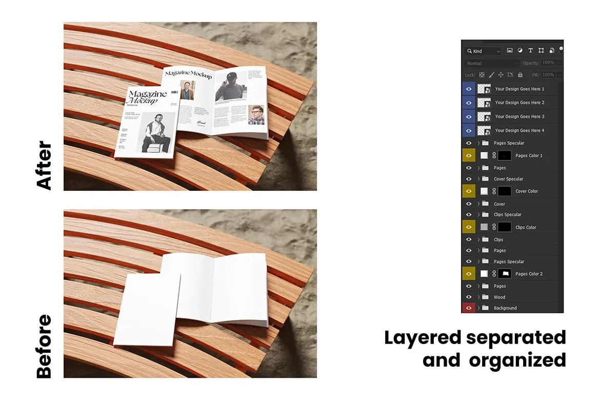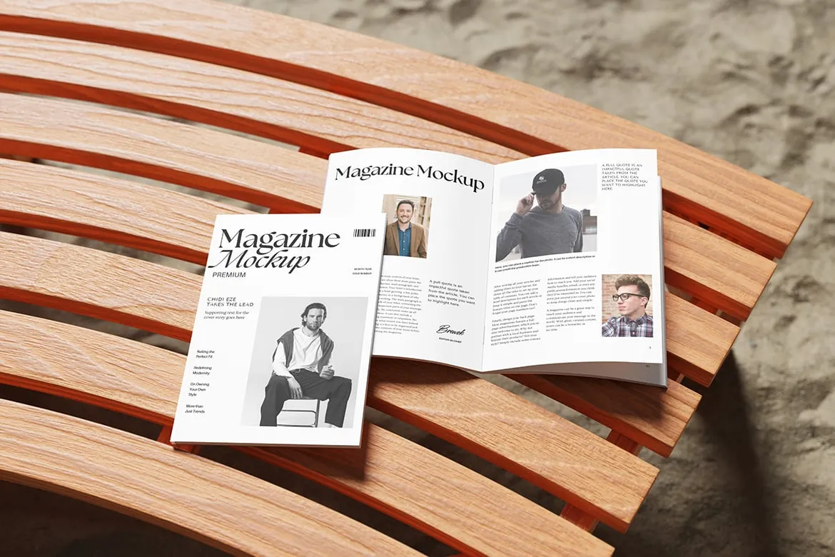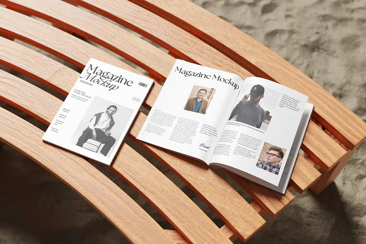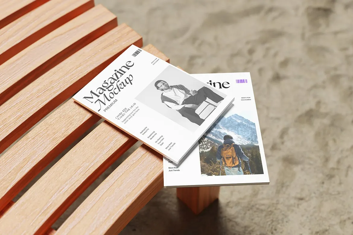 4款A4杂志模型封面内页展示设计贴图ps样机素材模板 Realistic Two Magazine Mockup