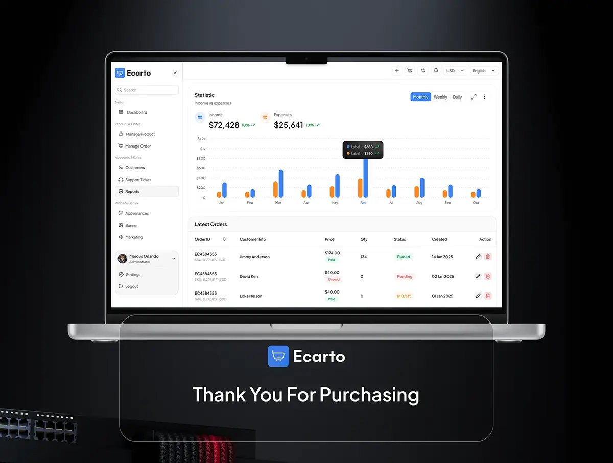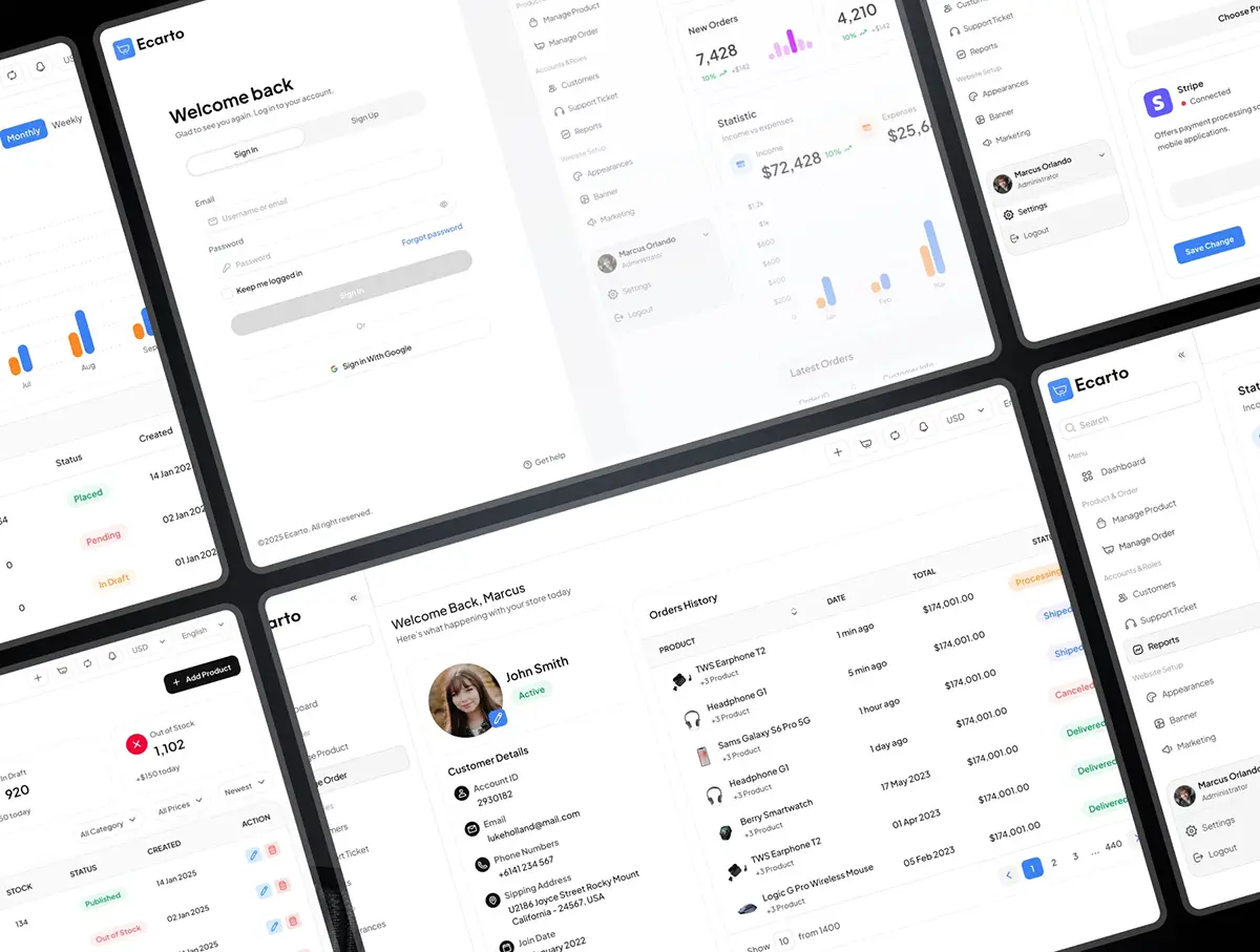 电商交易统计后台响应式网页用户界面ui套件模板 Ecarto – Ecommerce Management Dashboard UI Kit